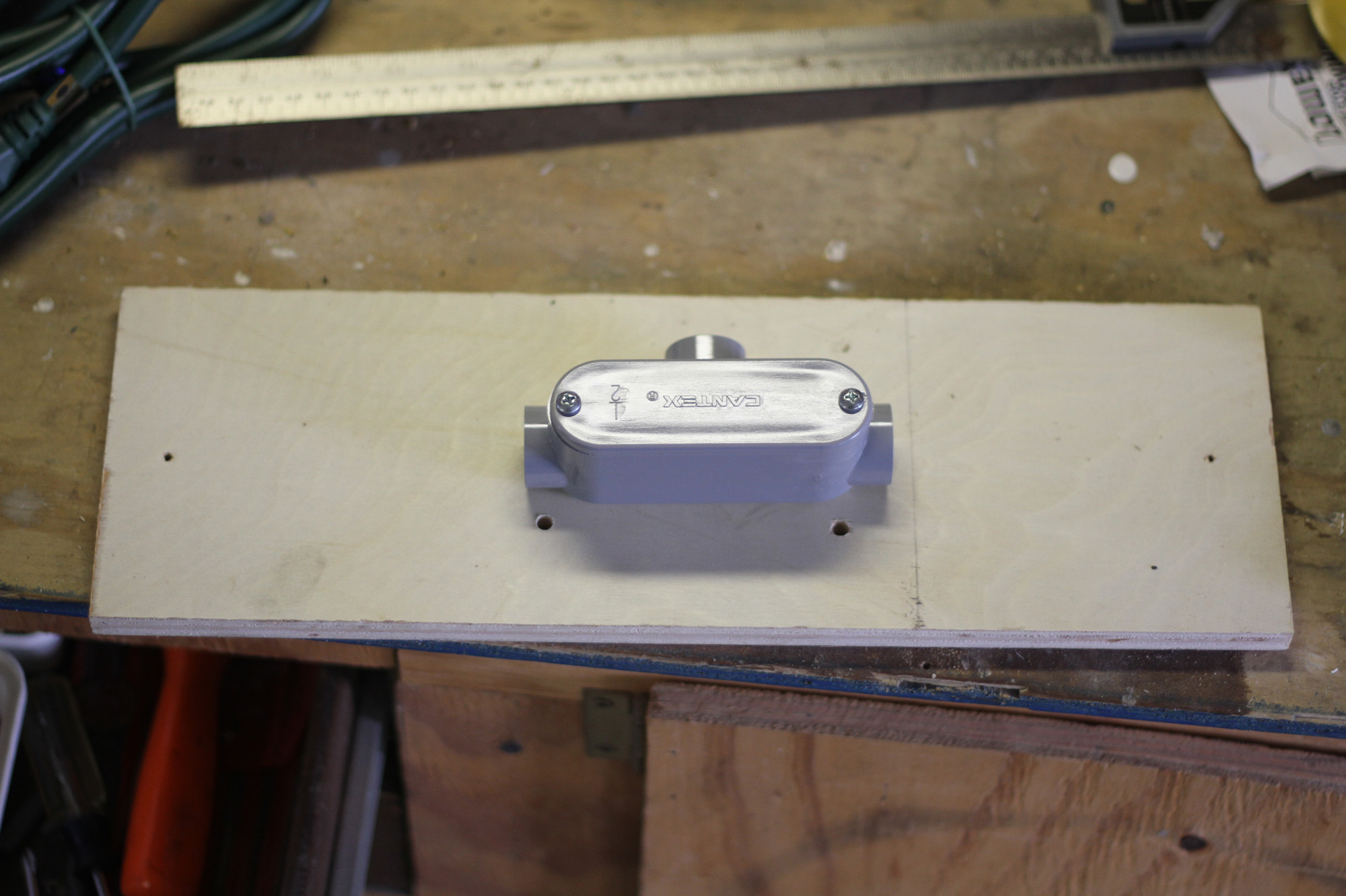 ---A 1/2" type T fitting (a tee like you might get with plumbing pvc except it opens to allow pulling wires through)