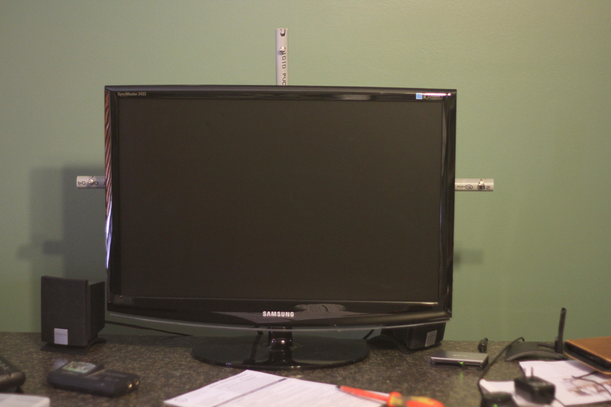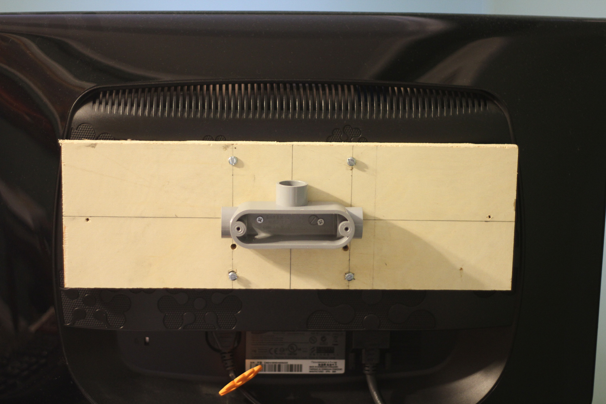 Attach the board to the monitor with the 4m metric screws. If you're a little off on your holes you could drill them bigger so that they will line up.