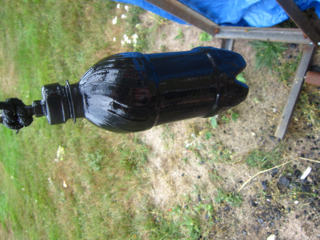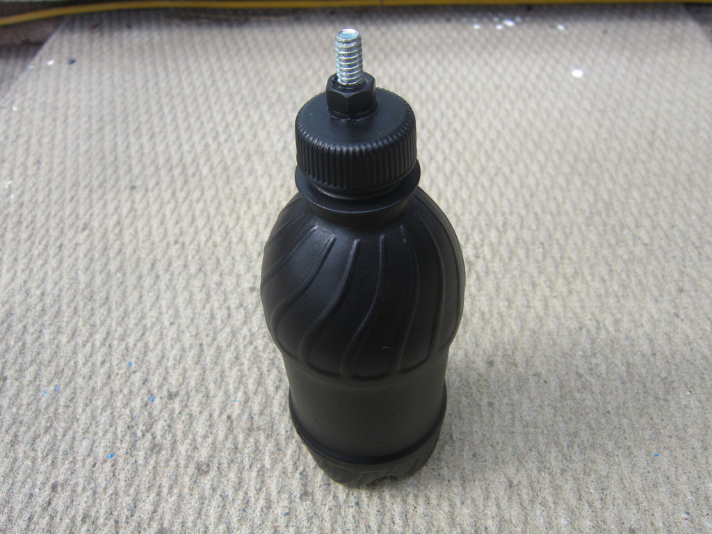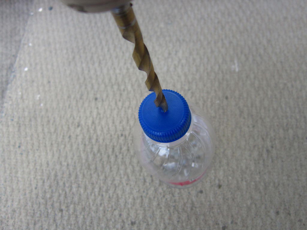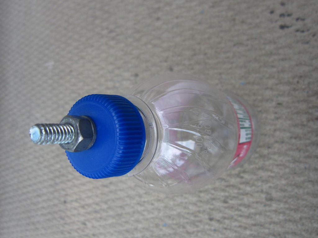 Si quieres pintarlo, solo tienes que envolver el extremo sobresaliente del perno (deja la tuerca y arandela expuestas) con cinta. Cuélgalo de algo y píntalo a 5-10" de la botella y déjalo secar al menos 24 horas. Una vez que la pintura esté seca, el soporte está listo.