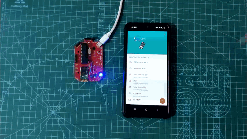 After checking the Ultrasonic Sensor, I uploaded the BT Test Sketch into the MCU and used a BT Terminal APP to connect with HC01.