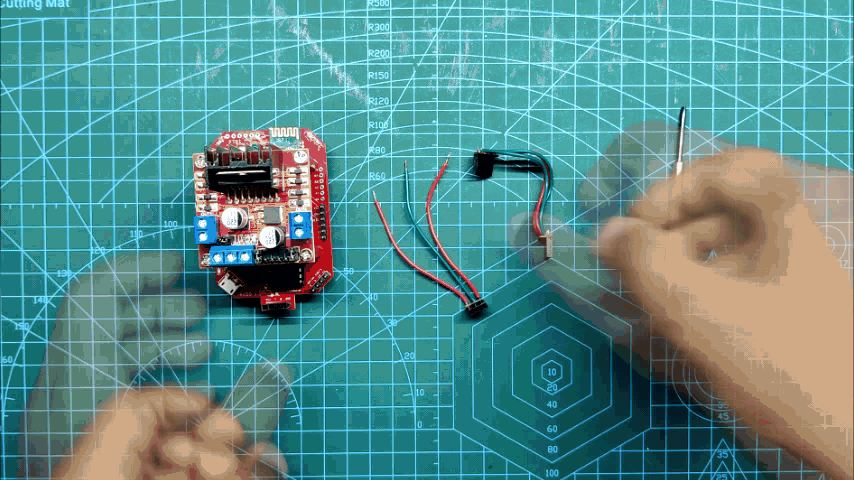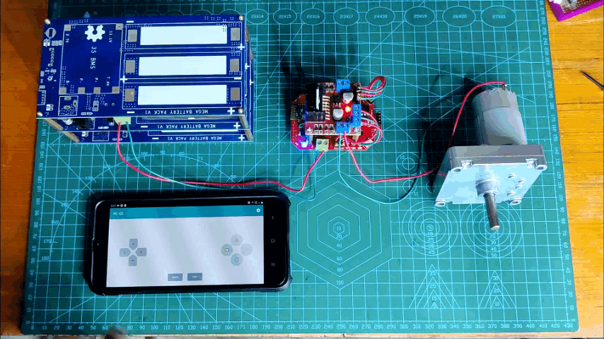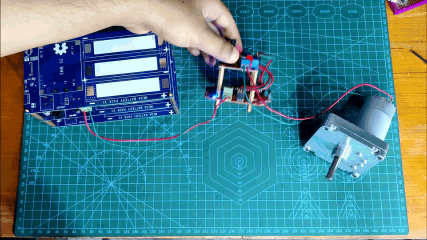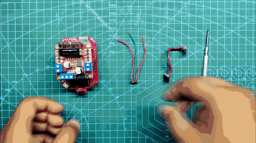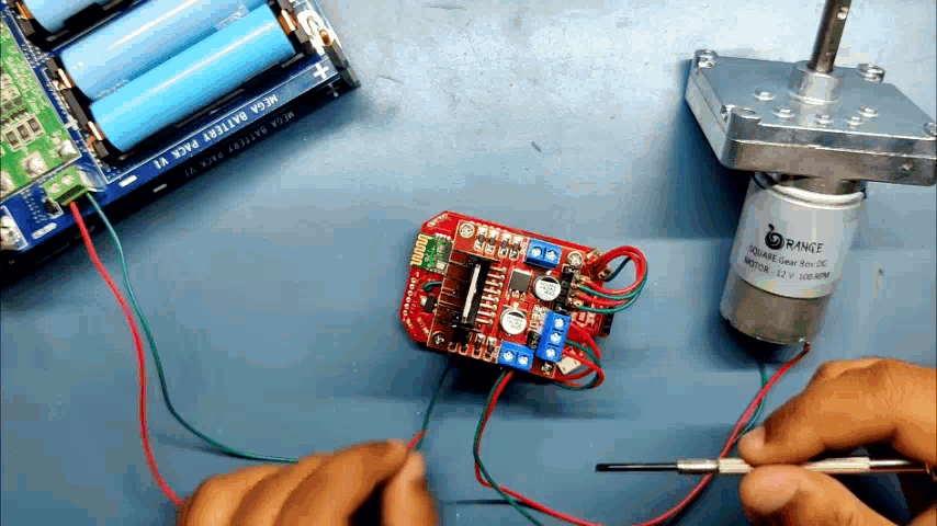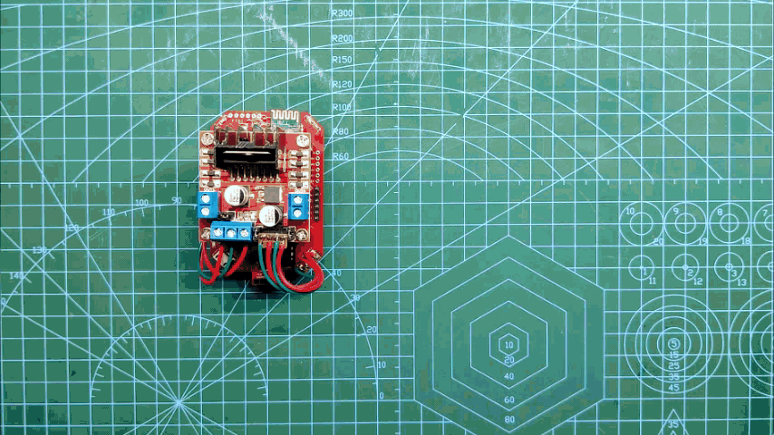And the setup is completed, now we can add the Battery to the Motor driver's VCC and GND port and add the motor's terminals to the Motor driver's connector.