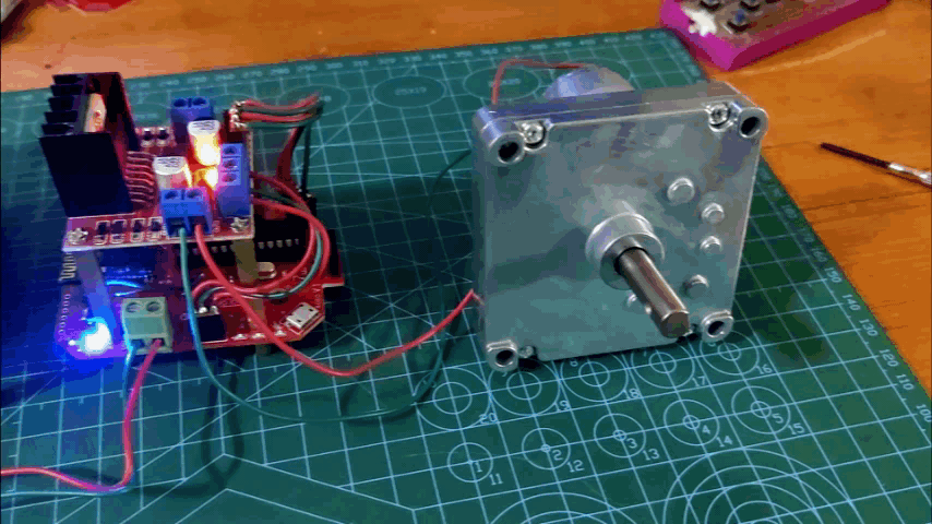 I uploaded the above sketch into the Atmega and then added a Gear DC Motor with a Motor driver's Connector and added a 12V Battery pack to power this whole system.