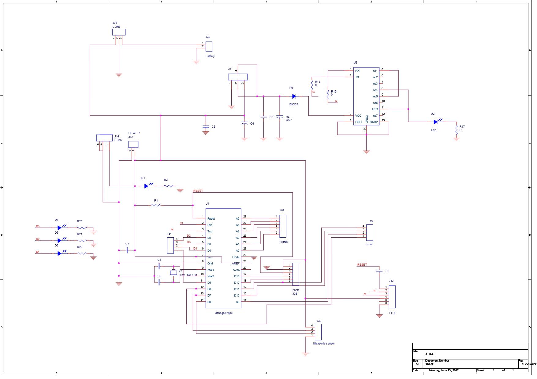 I also added a few LEDs with D2, D3, and D4 along with a CON4 header pin for connecting the Ultrasonic sensor with this board.