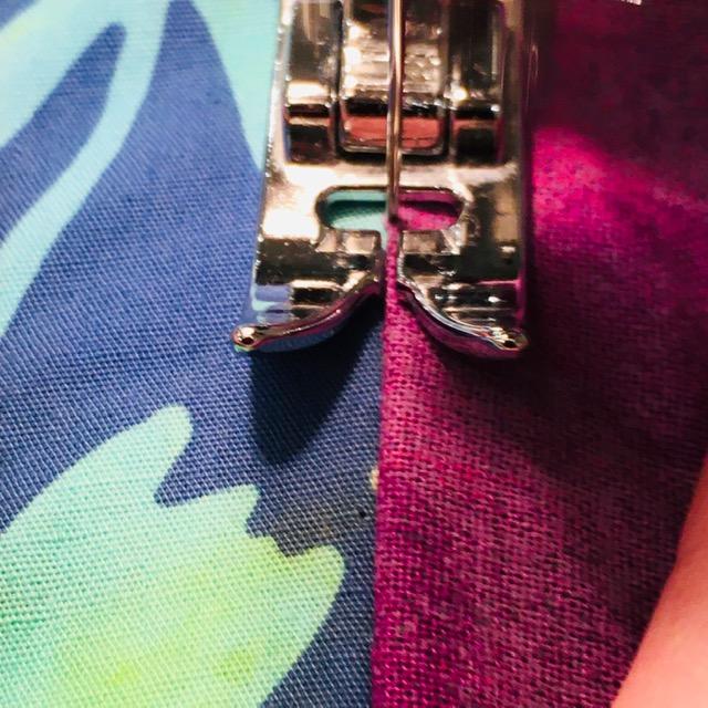 NOTE: I found that my stitches became uneven as I was sewing and my fabric slipped many times. This happens because the machine can't find traction on the slippery surface of the backing (waterproof side). There isn't any real solution, but try to stitch slowly and continuously adjust your fabric so that you can guide it.