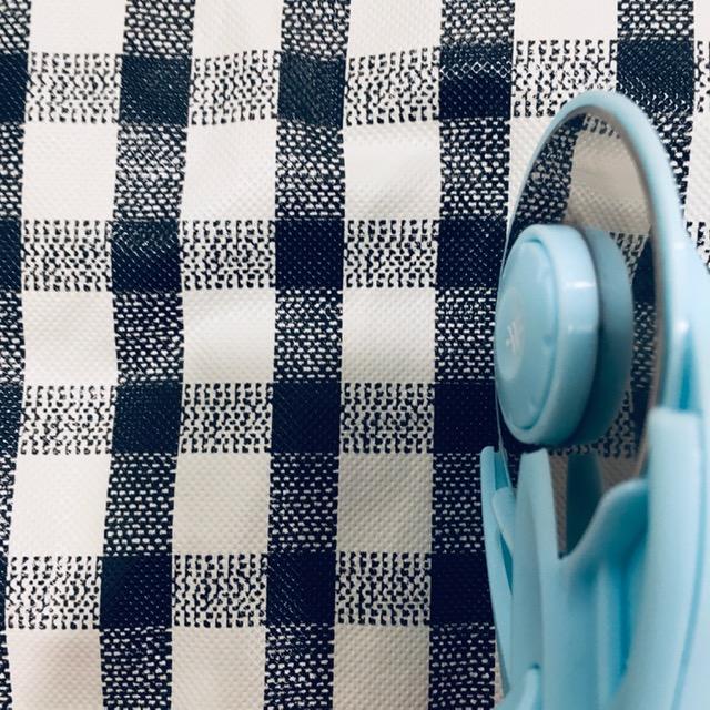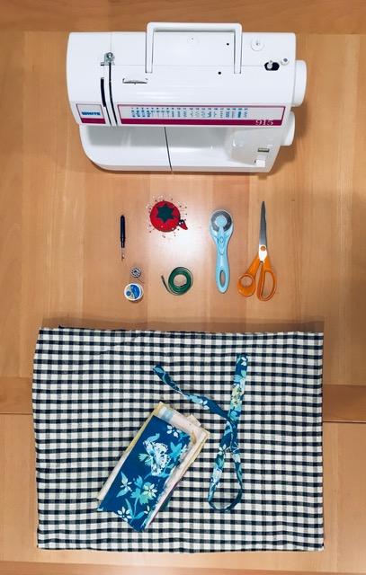 For the waterproof backing, there are several options. I'd imagine that not many people have this laying around. There are many different varieties, all with different textures and thicknesses. Click here to see some options. If you're not up to buying fabric, you can upcycle an old tablecloth (preferably one that feels smooth or waxy) or tarp. I used a checkered tablecloth presumably from a restaurant. Note: most sewing machines can sew through many layers of fabric, but make sure that it's not too thick.