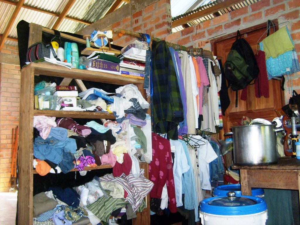 My family and I were missionaries lived in Bolivia for 5 months. We lived in a house with NO doors and NO glass in the windows, NOt even screens(the second picture is our homemade "closet"), with 2 other families 18 people.