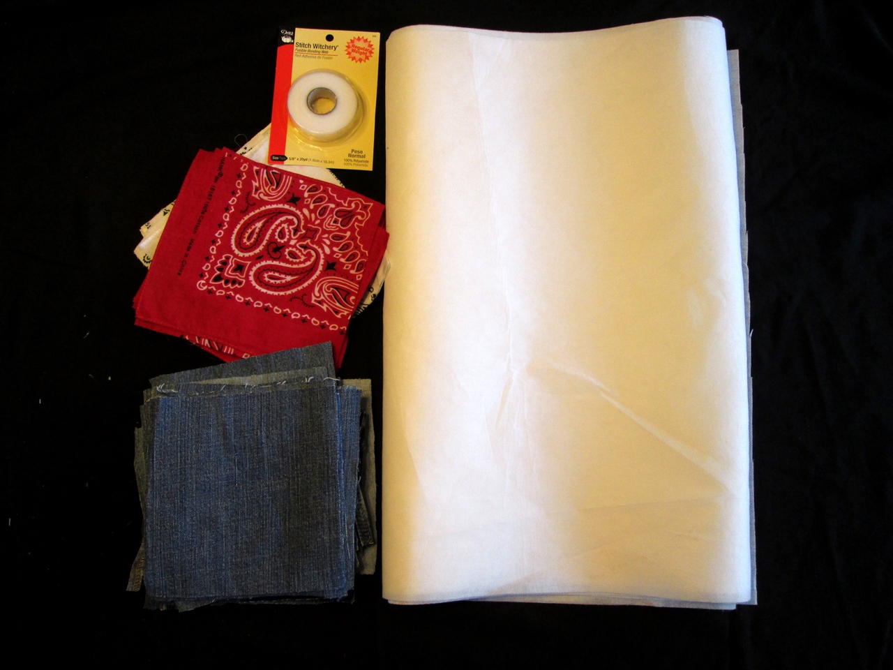 - recycled blue jeans* for a total of thrity-nine (39) 6-1/2 inch squares