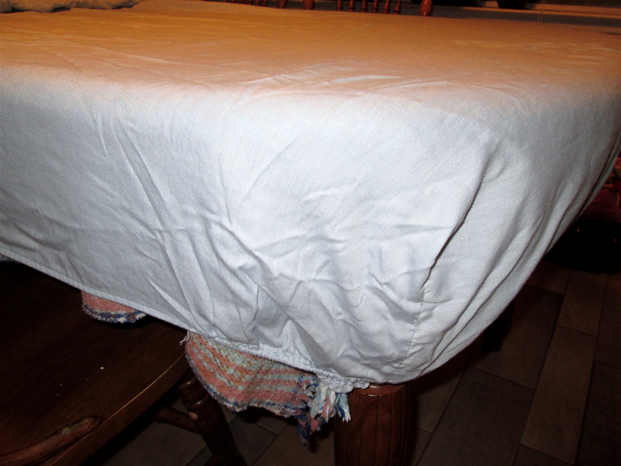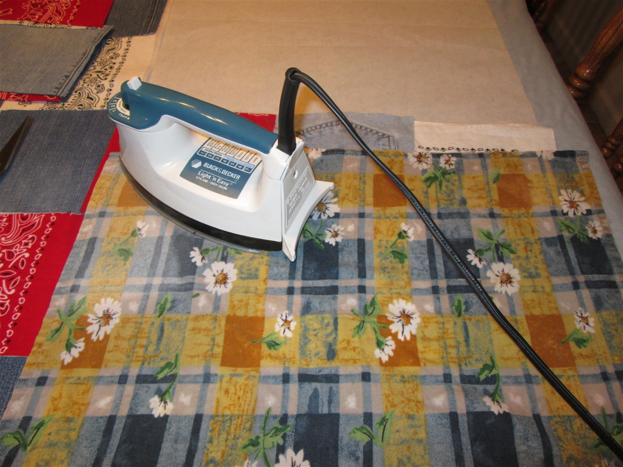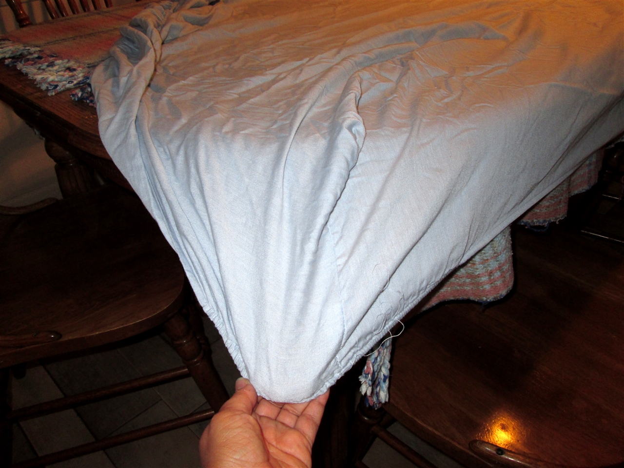 You can note that I used a twin size mattress fitted sheet to cover the top of the blankets for my make-shift ironing board.