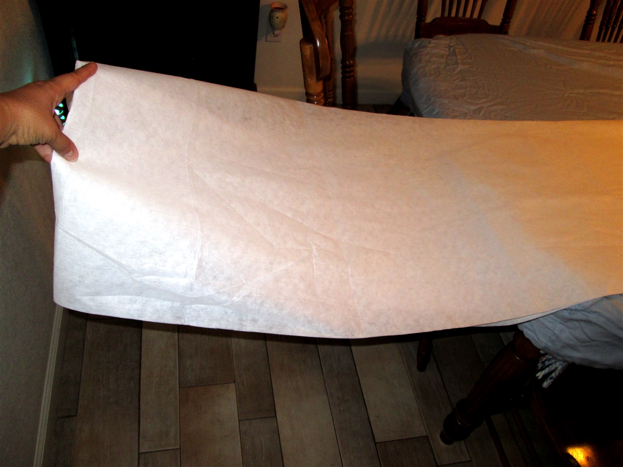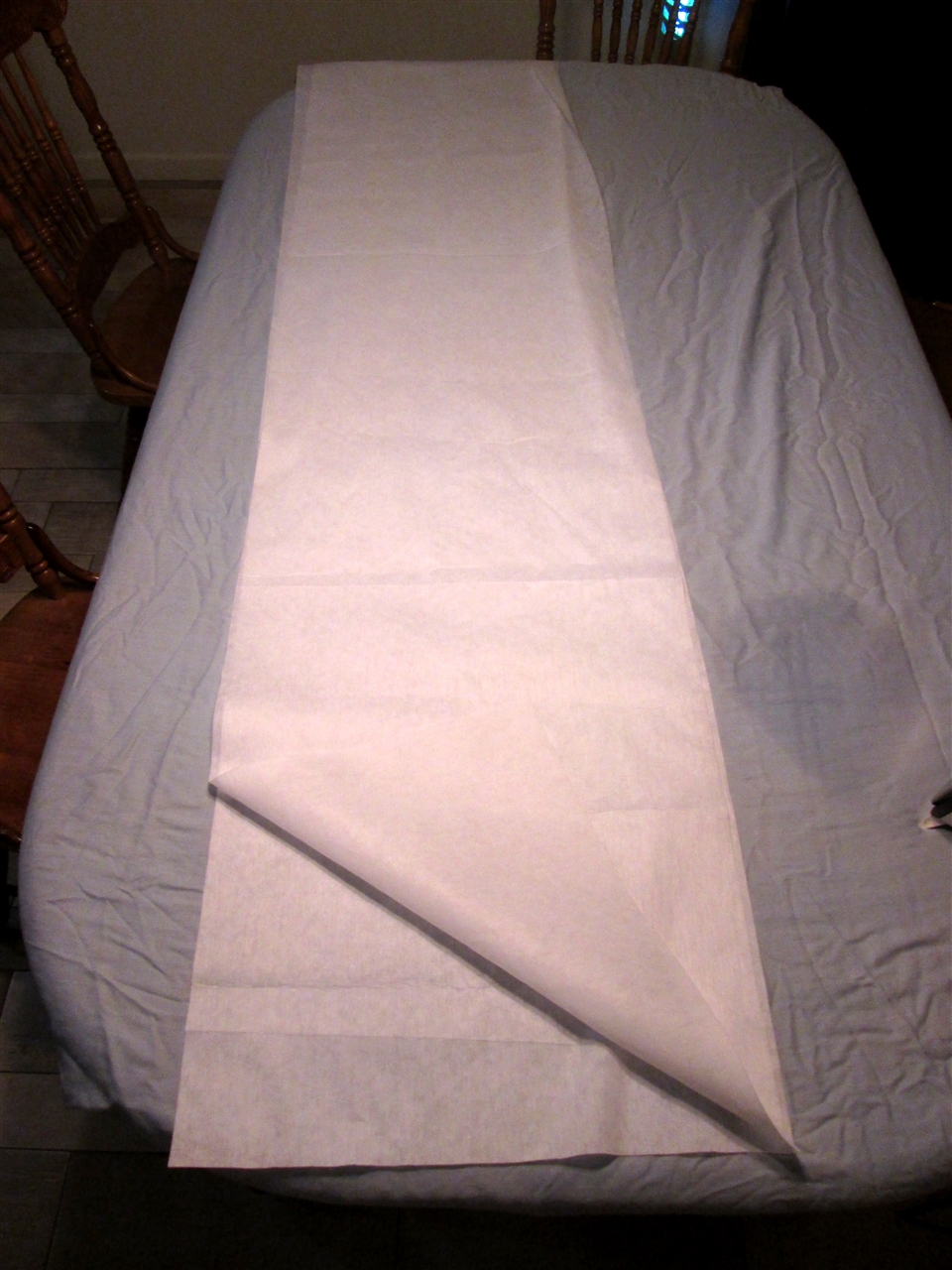 Before I started this project, I knew I wanted to be able to cover my kitchen table with the tablecloth, if possible. I purchased 6-yards of the 20-inch fusible webbing, which was more than enough.