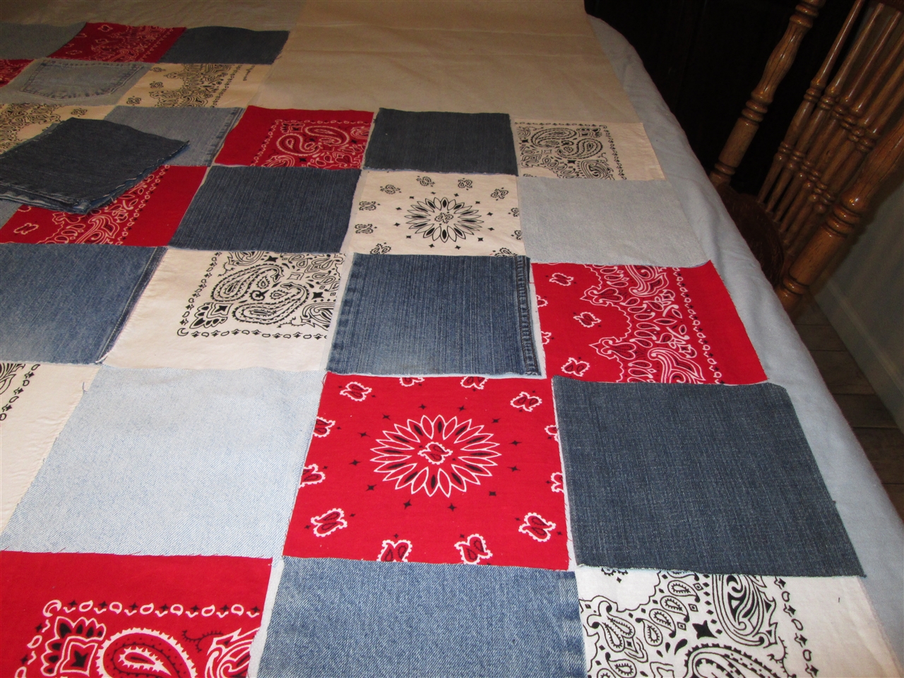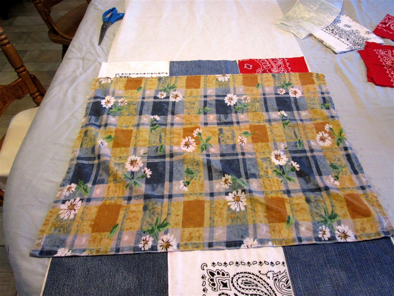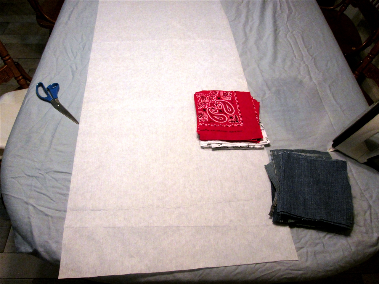 This instructable is the process of how I came up with this useful, relatively easy - although time consuming - no-sewing involved bandana & recycled jean table cloth.