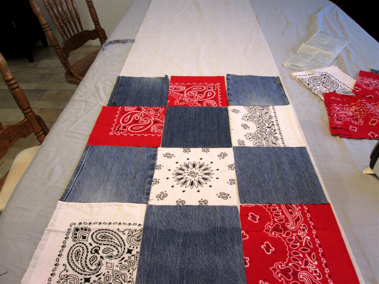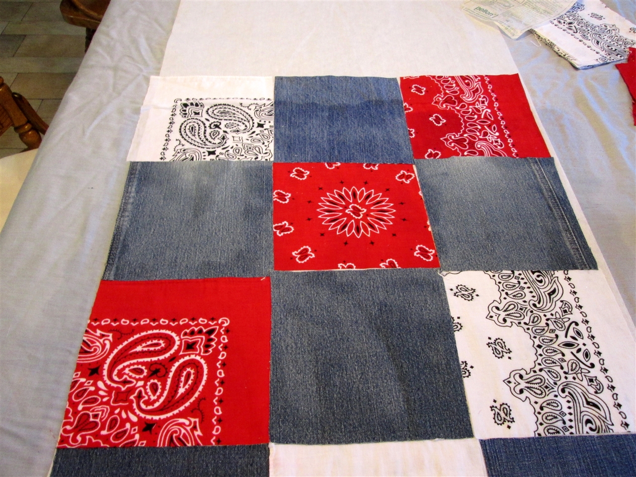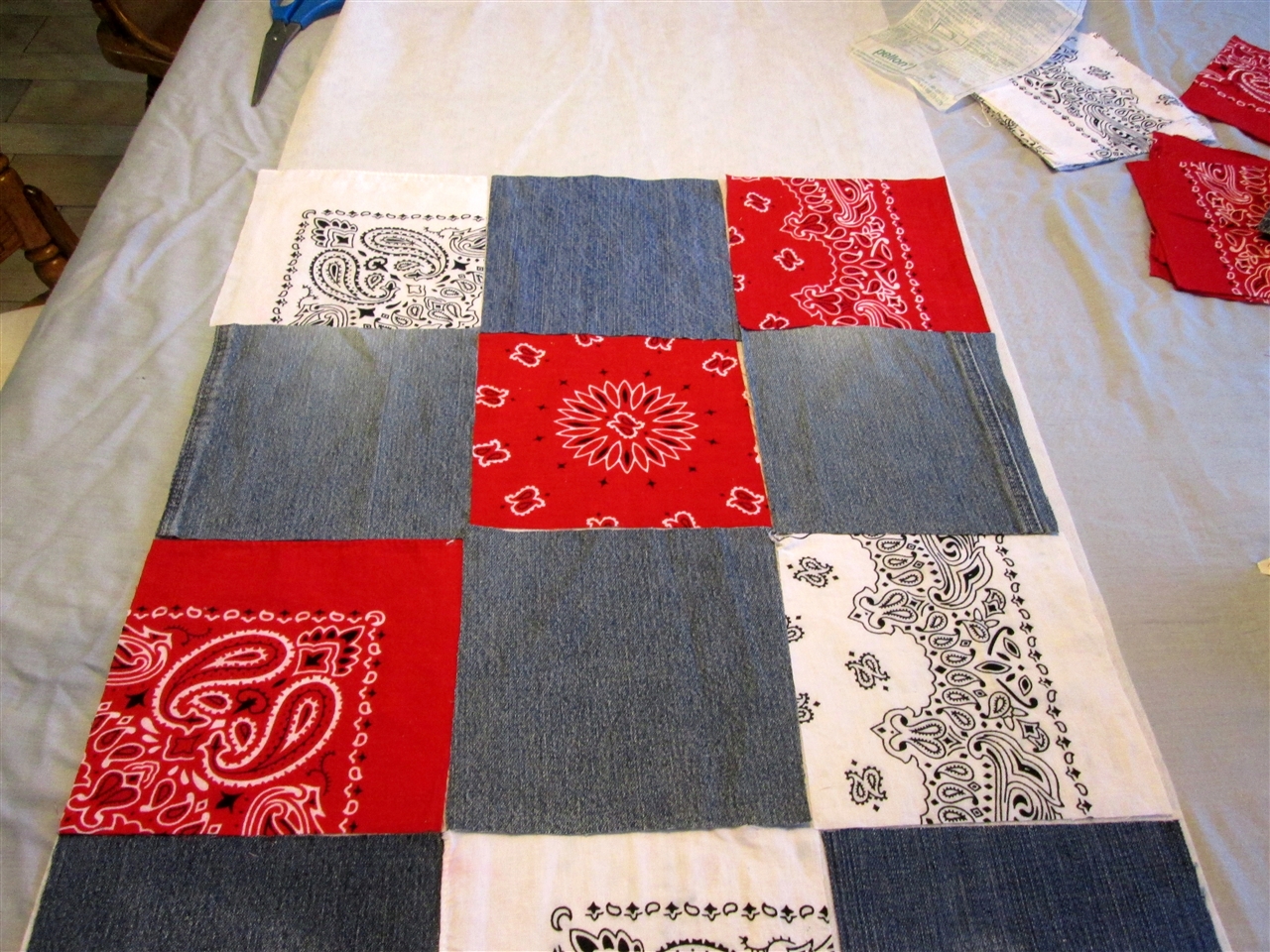Each row was a string of jean-square, bandana, etc. and I took the time to pre-lay-out every row and ensured that it worked with every column.