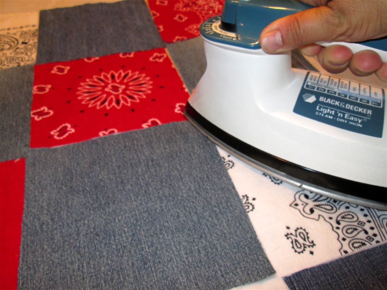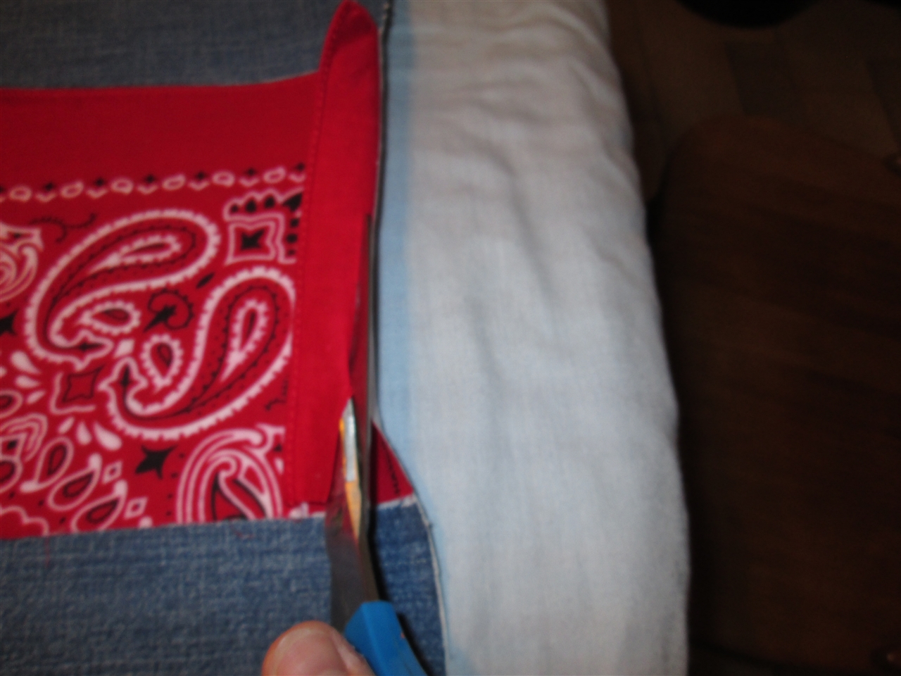 If the bandana piece hung over the edge of the inside where it matched to the first side, I ironed the piece down prior to cutting it.