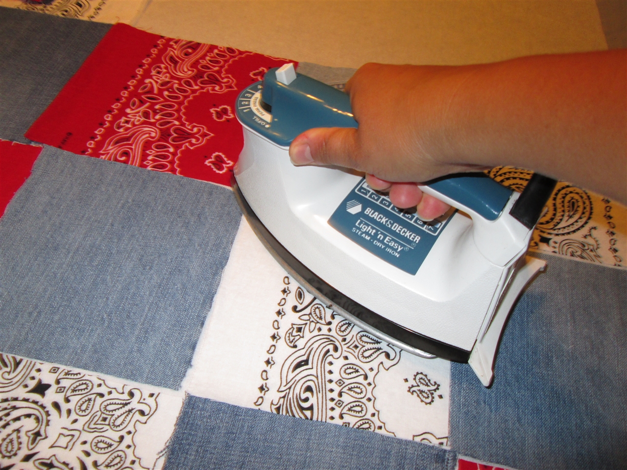 - using the tip of the iron, I pressed the iron in each corner of each square to keep it down