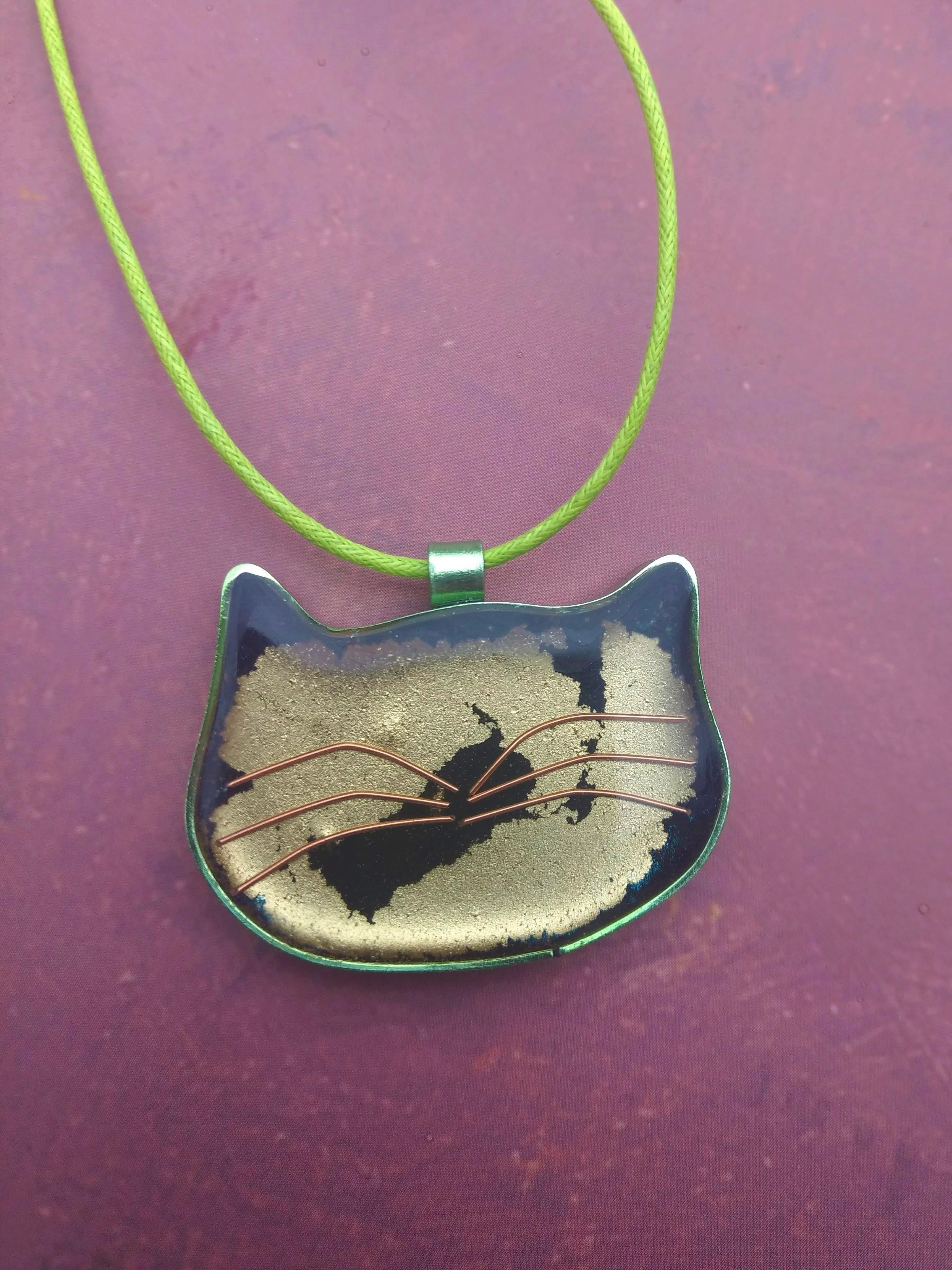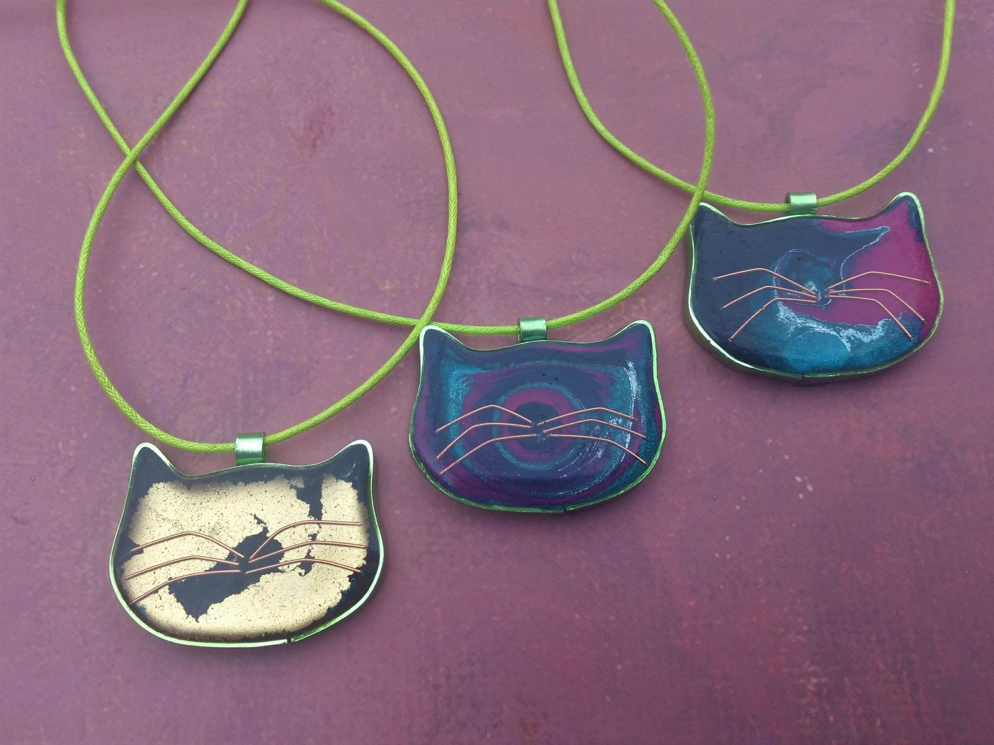 For the first cat I also added a couple of heaps of gold metallic powder before pouring. With this cat I poured on one side, then another, to achieve the partially metallic effect. The other two I filled almost to the top of the bezel.