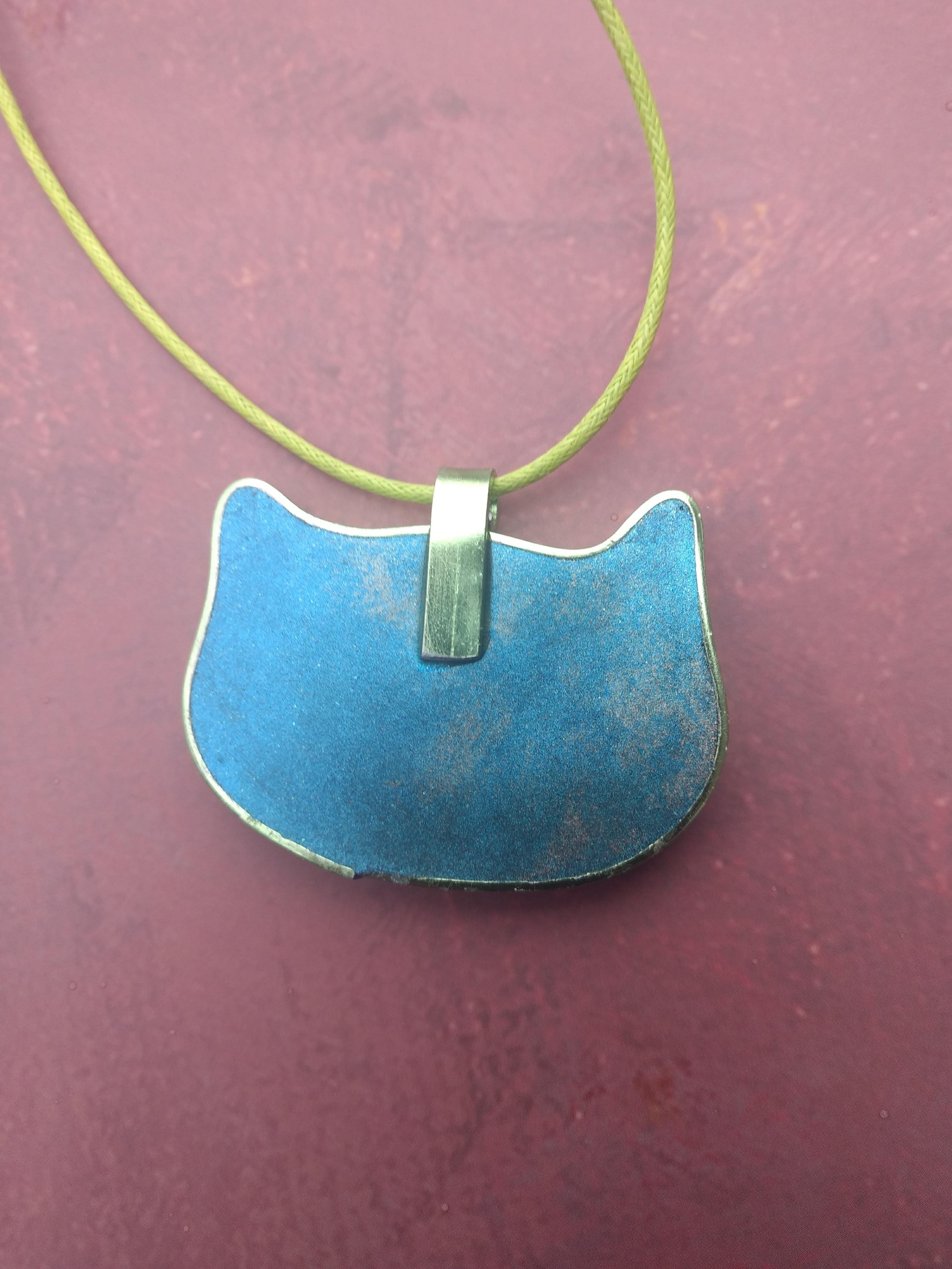 Optional stage: paint the inside of your bezel with pigment powder. This will make the back of your pendant prettier.