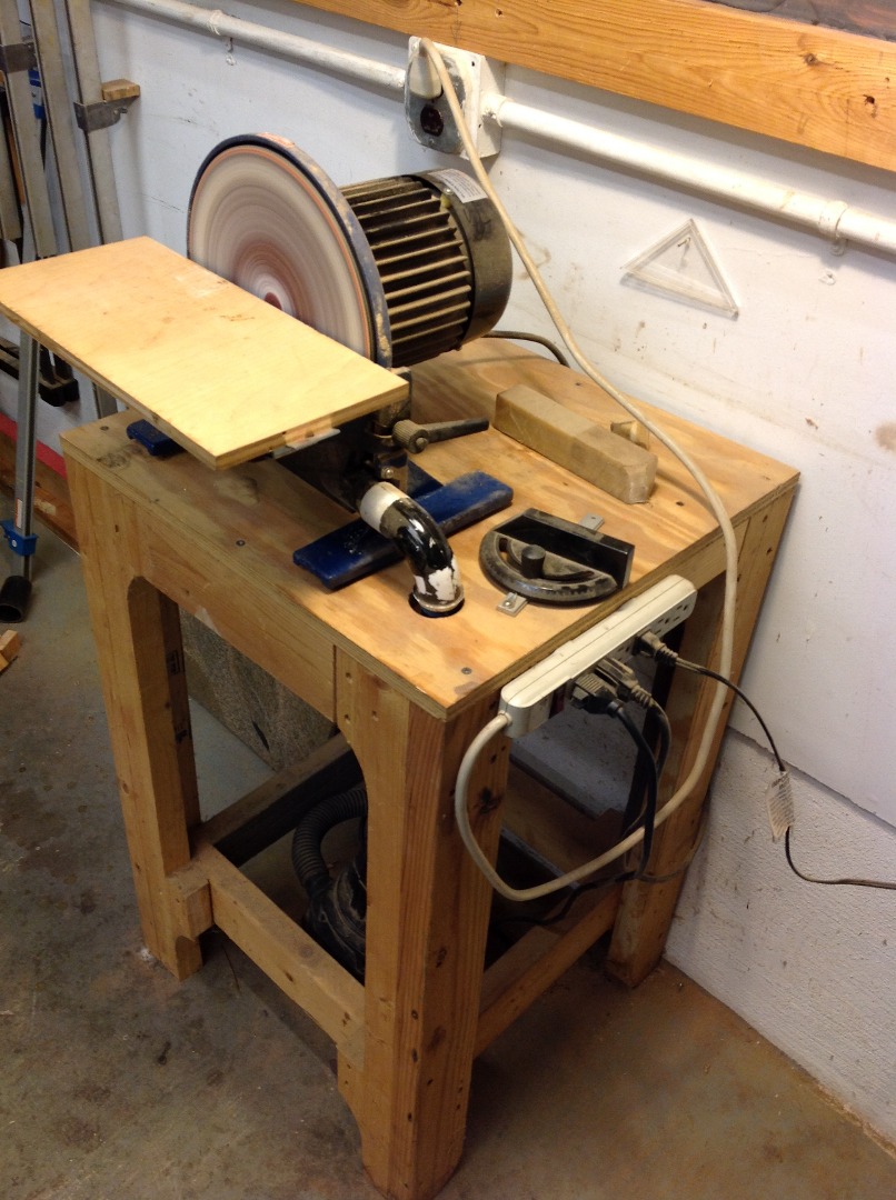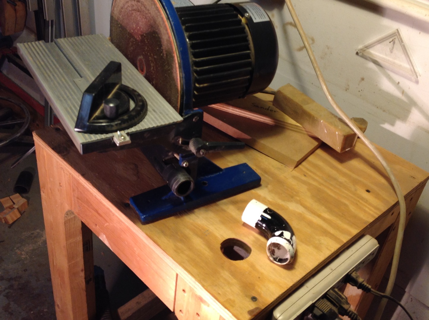Disc sander -Mine is a 10" from Harbor Freight I think I paid $80 for it. I just checked their web site and they now sell a 12" for $139.00.You'll also need a pack of sanding discs and a rubber block to clear the pitch. Always check your square on both sides to ensure that its true.