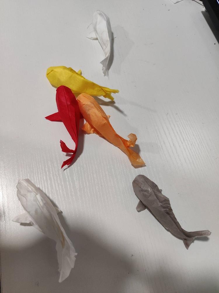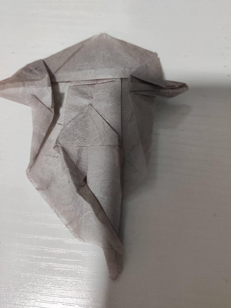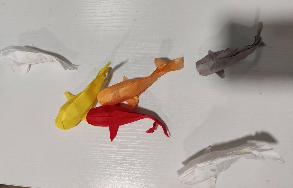 Mountain fold to form fish body; side fold-in as shown as fish side body for both sides.