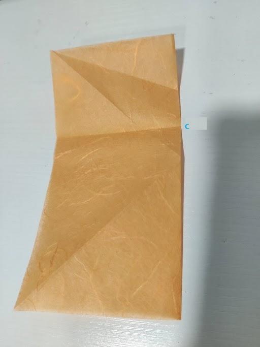 Unfold and rotate 90 degrees. Find the middle point C between marked folding points A and B.
