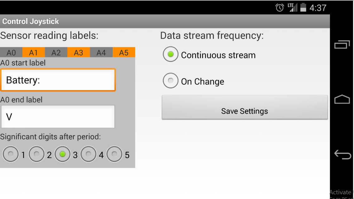 Chương trình điều khiển chạy trên Android, chương trình này cực kì hay luôn, hay nhất trong vô vàn phần mềm miễn phí mà mình tìm thấy trên Google Play. Nếu bạn đang cầm điện thoại trên tay thì hãy vào Google Play và tìm từ khóa này: Arduino Joystick Controller. (Link vào ứng dụng tại Google Play)