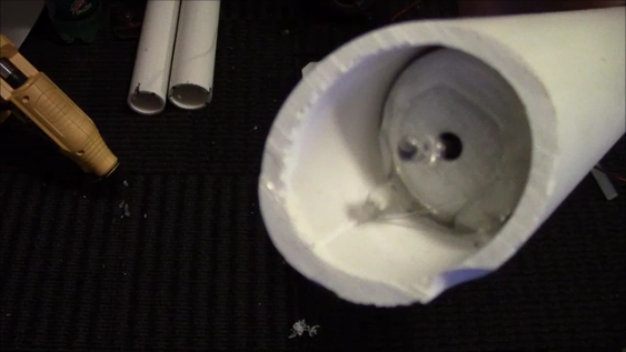 Take the cap and push it into the 1-1/4" pvc pipe leaving the bulb just below the lowest edge. Run a bead of hot glue around the top of the cap to glue it to the inner wall of the pipe. You can put a ring of glue in first and then insert the cap from the bottom and the using a stick or something you can push the cap into the glue, but be quick. Do this with each pipe and on the bushing piece inside the 1-1/2" pipe you'll probably need more glue to fill in the gaps and make sure it's secured.