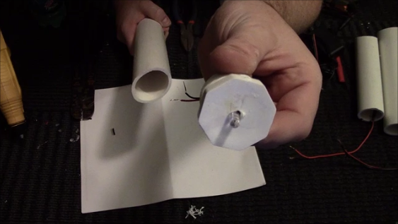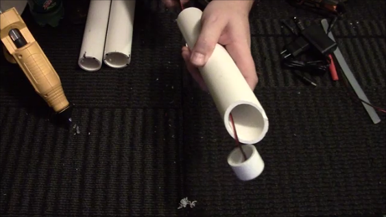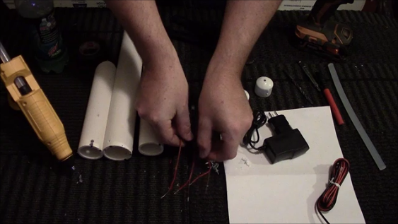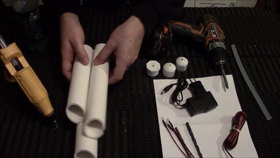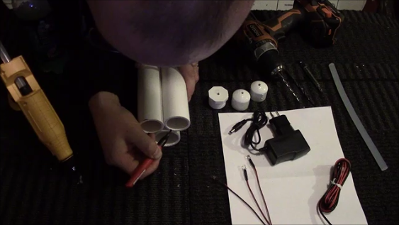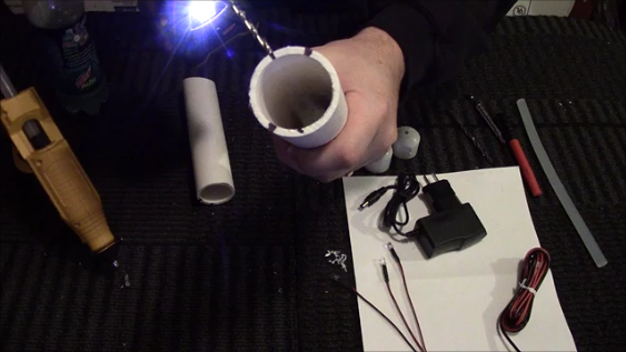Set aside those pipes and take your 3/4" caps, 1" bushing and an 11/64" drill bit. Drill a hole into the center of each cap/bushing to create the hole for the LED. Strip the wiring insulation from the LED after you thread it through the hole. Cut a piece of speaker wire that is about 1ft long or so. Connect the wires together using soldering and heat shrink. (you can use electrical tape as I know many people do, just beware if you put it outside you could have problems, don't come after me!!). You can also use wire connectors that you crimp onto the wires as well, again indoors only if you do that.