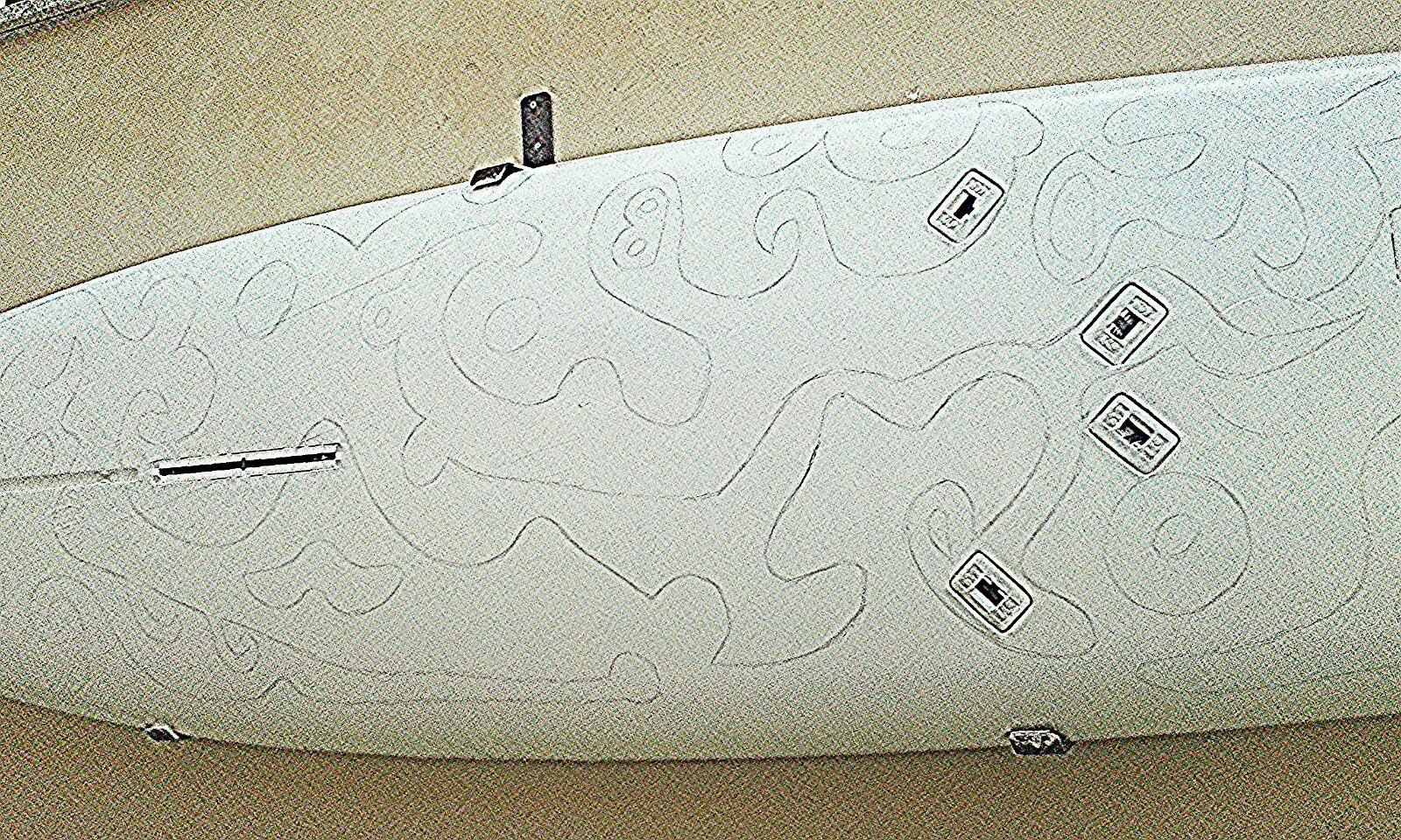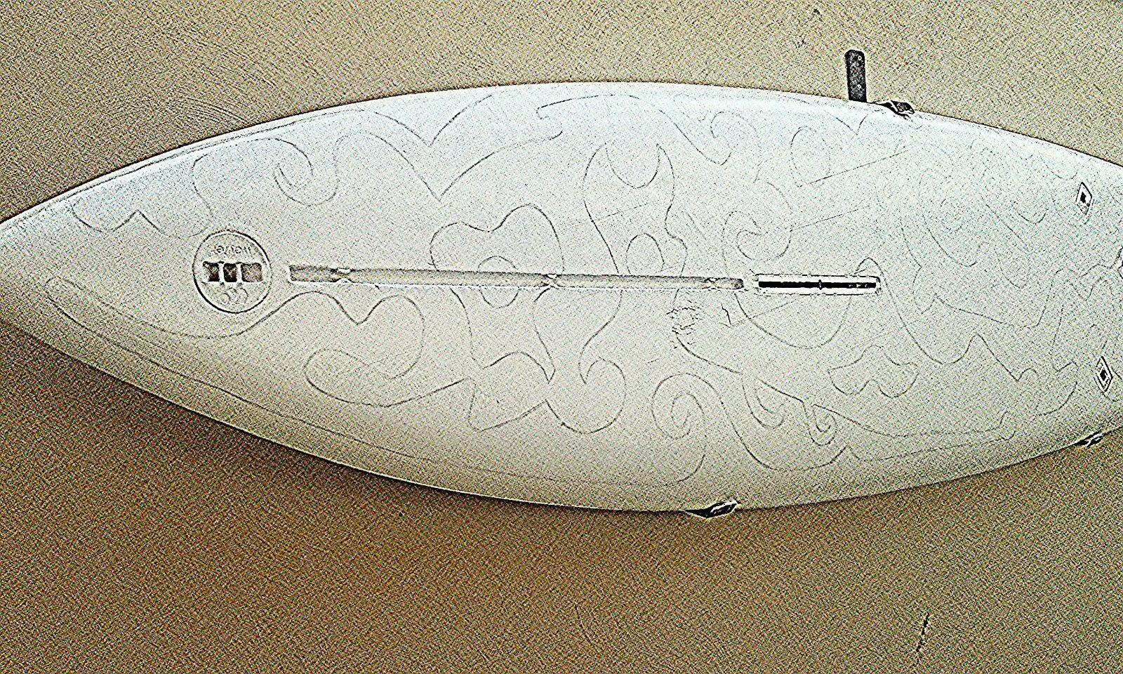 Five years ago my uncle found a broken windsurf board on the beach. He told me to paint it as I wanted. It was long time ago, so I don't have all the pictures of the process, but I want to give you some tips on how to paint a surface like this, which is going to be exposed to the sun, air and rain for a long time.