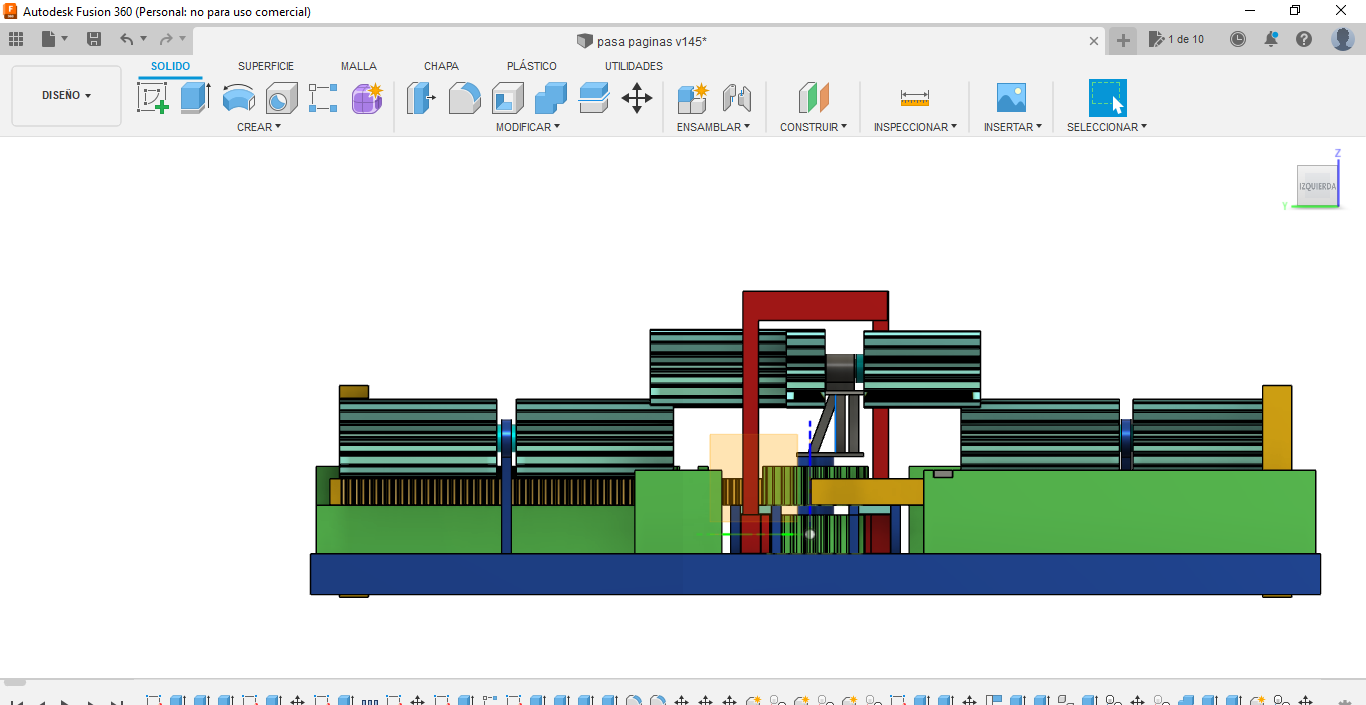 Se controla mediante motor, suben las cremalleras amarilla solo en el eje y. La idea es que sube un diente cada x numero de páginas (calculo mas menos 20pag.)