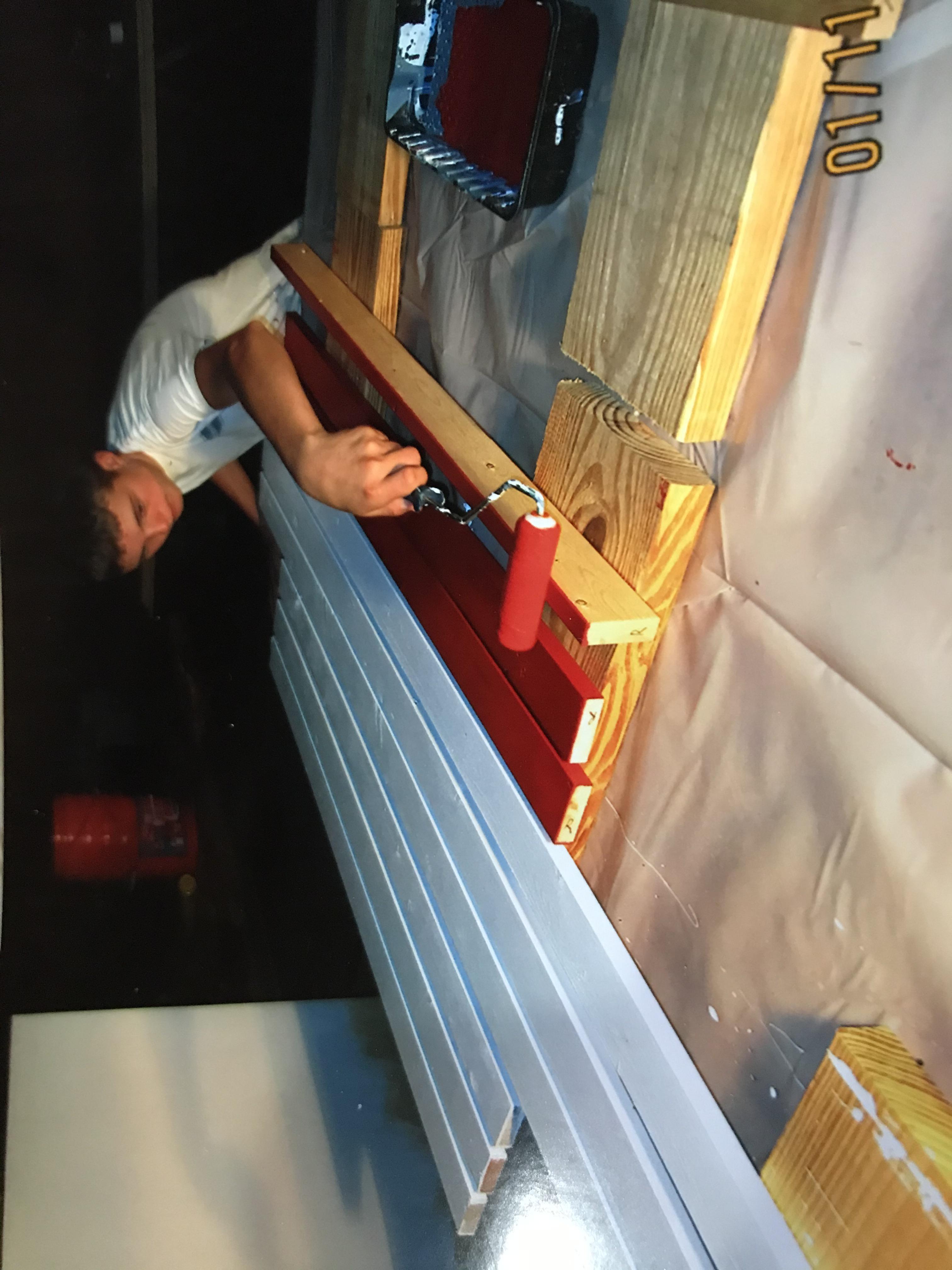 - Assesmble painted pine boards onto plywood base and install each by brad nails