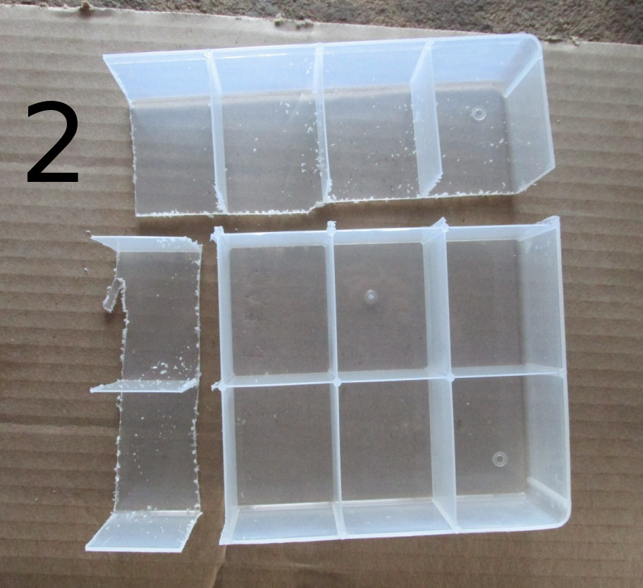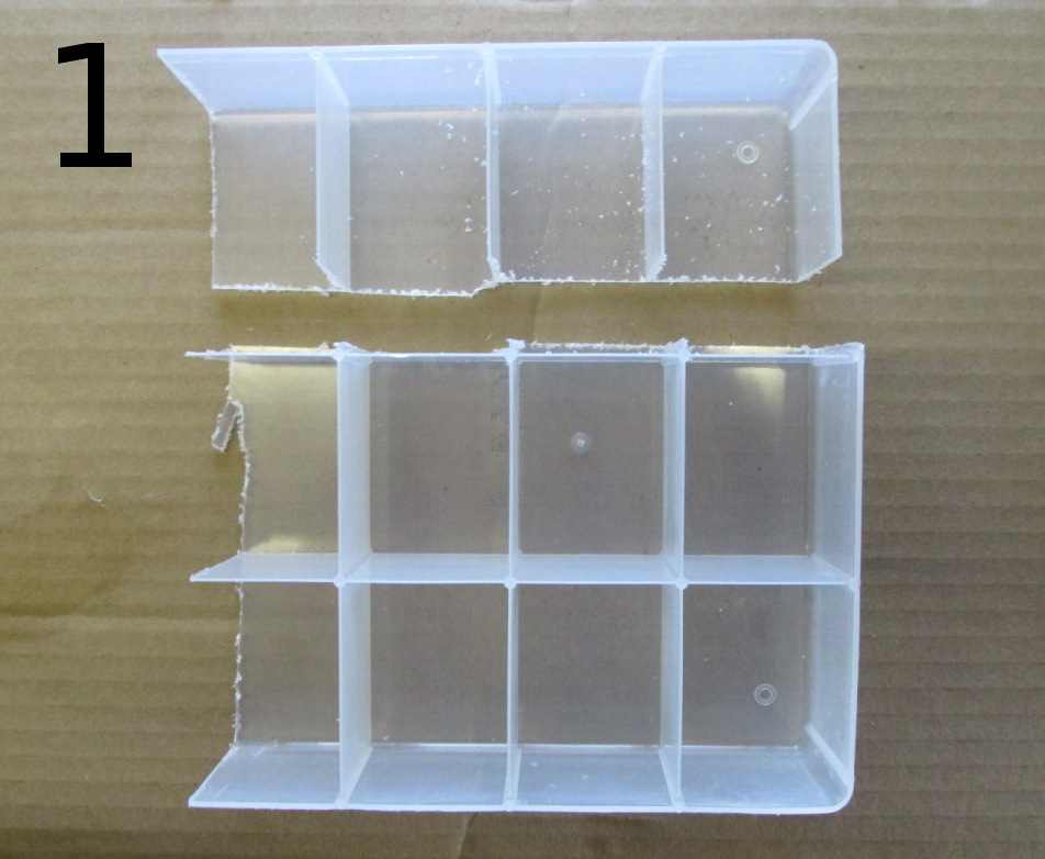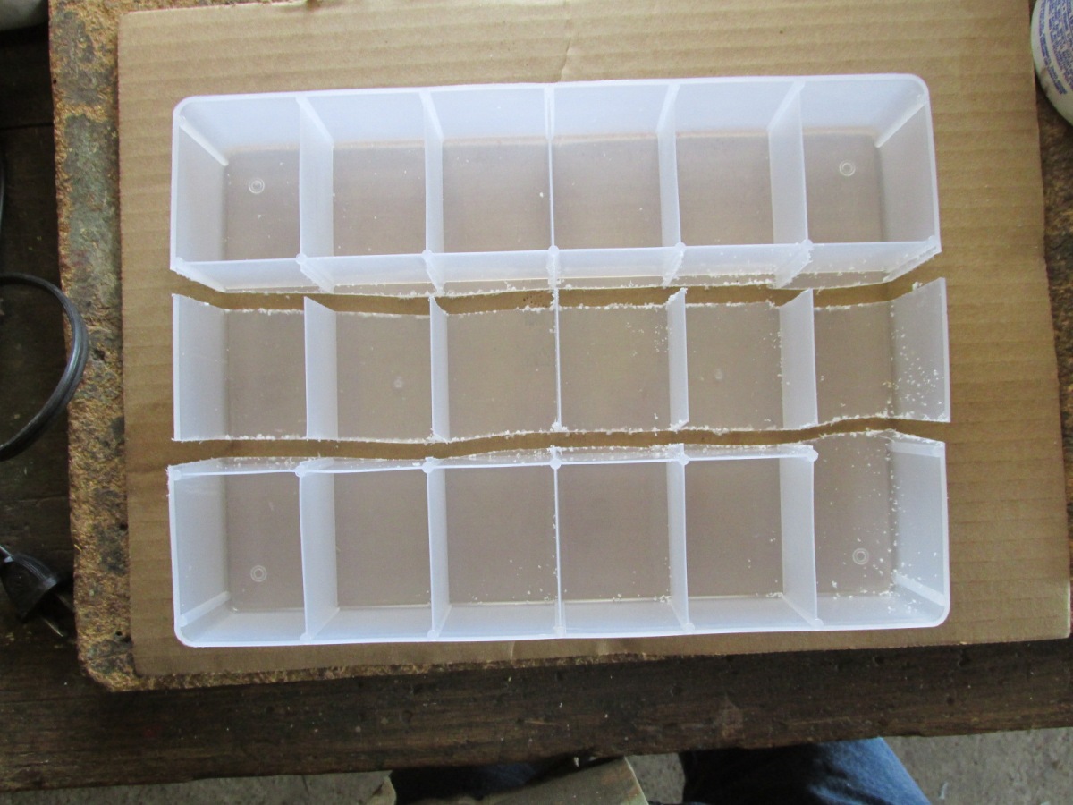 Don't throw away any plastic until the project is complete, as we will need some later to fill in the compartments that are double-sized.