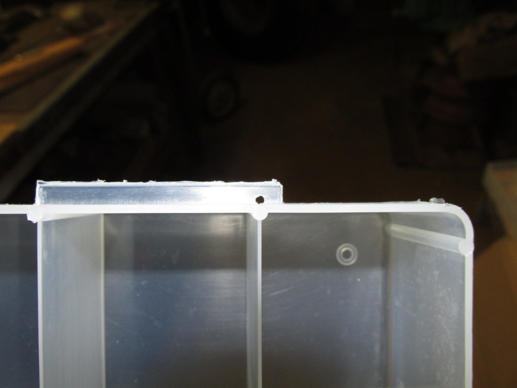 Okay, so now for the pillars that connect the two parts of the display. They each consist of a piece of stainless steel (or nickel plated steel) tubing with a dowel stick inside. Small sheet metal screws go through holes in the plastic boxes into the ends of the dowel rods. I cut my tubing to 2 1/4" long for the short pillar and 4 1/2" for the long one. The dowel rod gets cut to the same length, or a little shorter, but it cannot be longer than the tubing. Just put it in the vise and cut it with the hacksaw. It can then be cleaned up on the grinder if need be. When placing the tubing in the vise, place the dowel rod inside to keep it from being bent out of round. To figure out where to drill the holes in the display, I laid the display flat and then measured up from the work surface 7/8". That gave me one dimension. The other was determined by centering the hole on the desired compartment of the display I wanted to center my pillar on. The hole in the display must allow the screw to pass through freely, but the hole in the end of the dowel rod must allow the screw to grip (but too tight and the dowel will split). Put the dowel in the vise and drill into the ends deep enough for the screws. For a 6 diameter screw like mine this meant a 1/8" drill bit. Once all the parts are cut and drilled, you are ready to assemble. I used Phillips-head screws, so I had to hold one screw while I turned the other. This meant two 90 degree angle screwdrivers. And it was awkward. It would be much easier if hex-head screws were used, because it would allow the use of wrenches and sockets. If the display looks crooked when put together, you can add washers like I did. I added two 3/16" inch washers in between the display and the metal tubing on the longer pillar to make my display look nice and square.