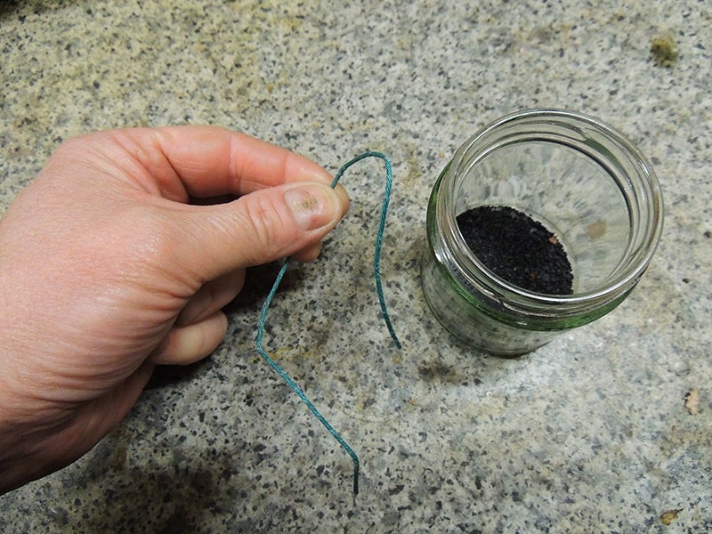 That was the point at which I resorted to gunpowder from fireworks. This is the amount of gunpowder you can get out of a £16 ($20) battery firework. It is about three quarters of an inch deep in this small jar. Also shown is a length of fuse cord. This is gunpowder sealed into string. I got about fifty inches of that.