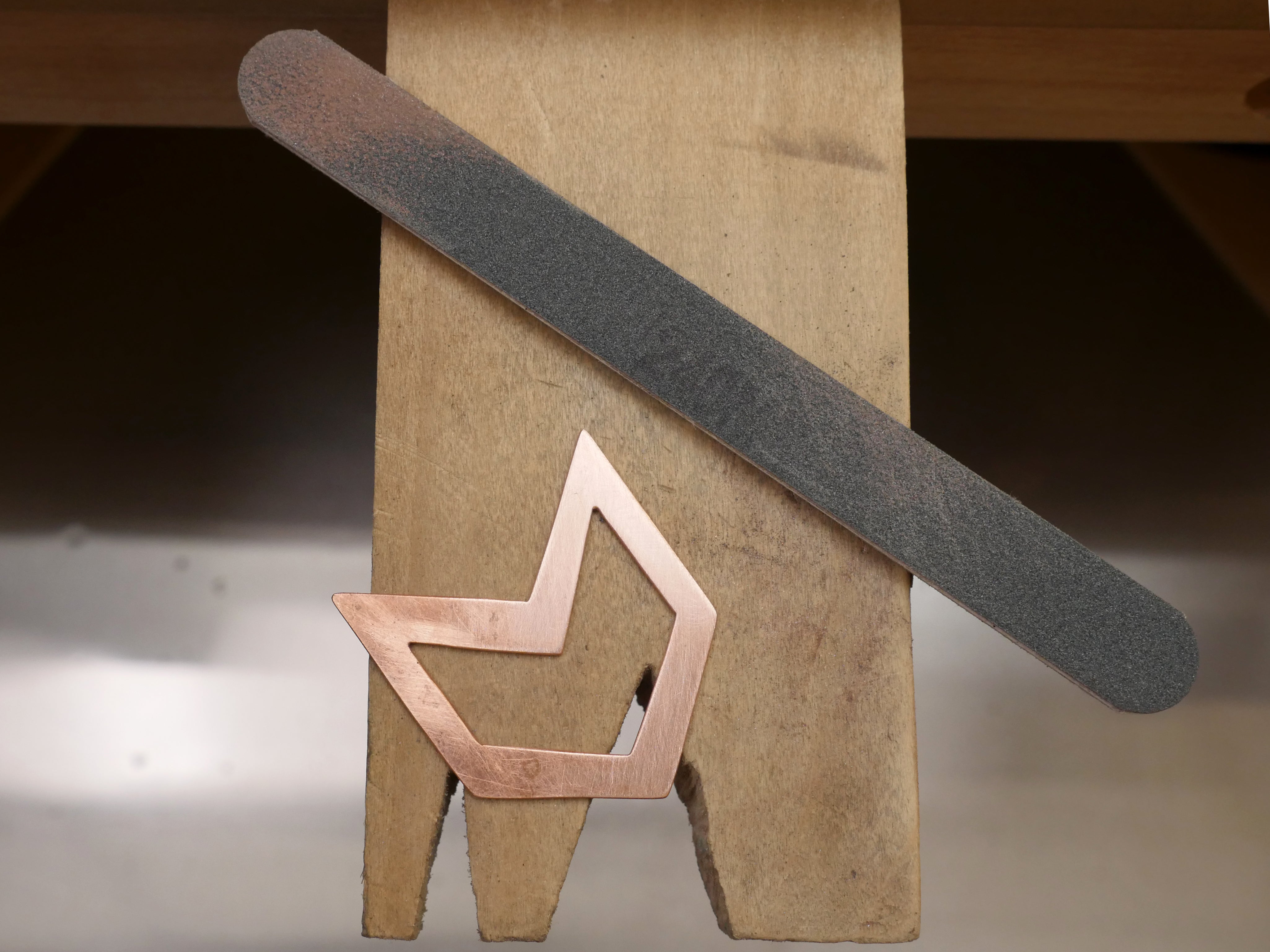 This lesson introduces the tools and techniques you'll need to create finished jewelry from precious sheet metal! We'll walk through the steps to create a chevron pendant (or keychain) from copper (or sterling silver, etc. if that is your preference) by sawing, filing, sanding, and polishing the metal before attaching jump rings to a necklace chain or key ring.