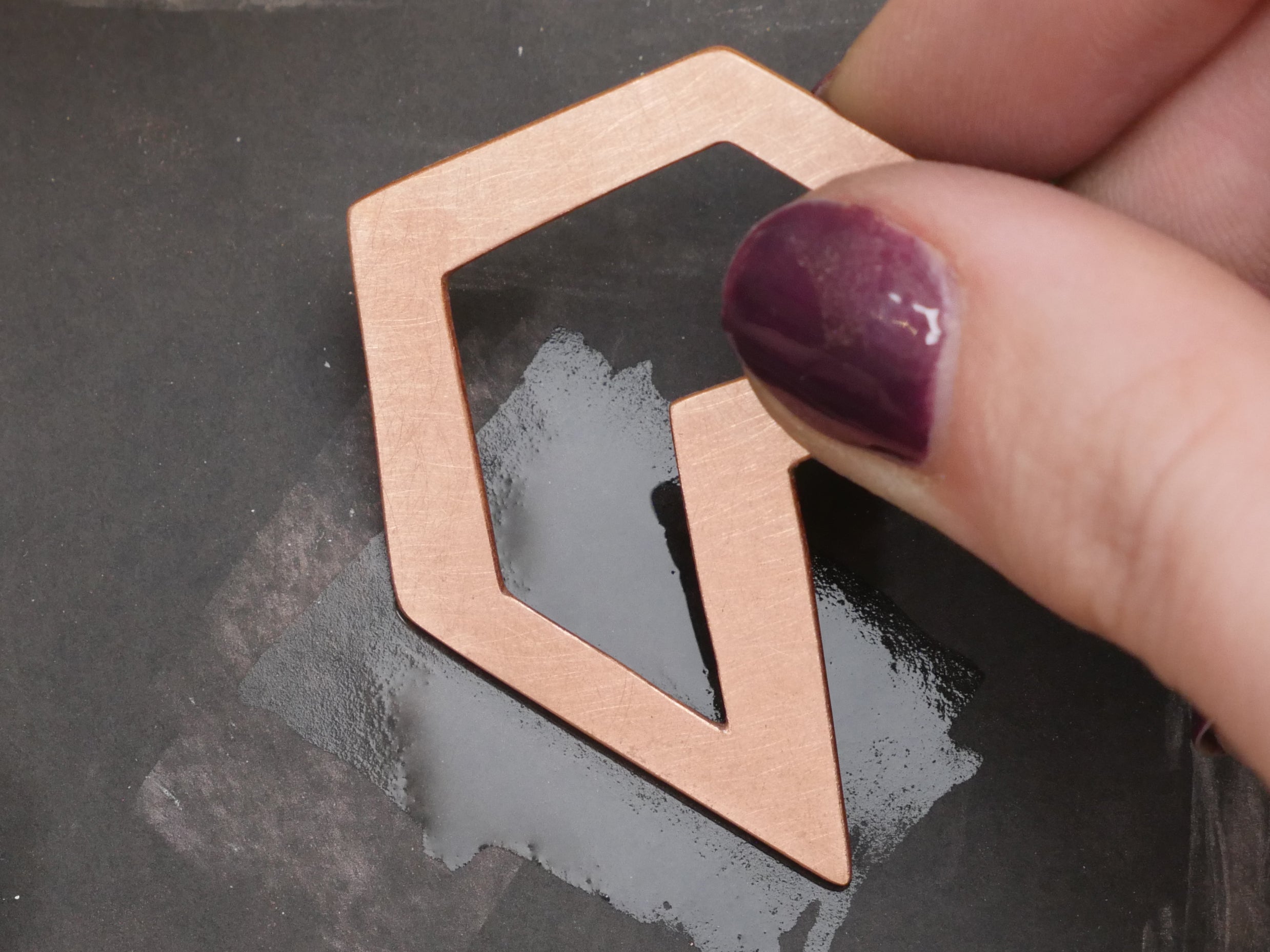 The metal you choose may vary based on your budget and preference, but should be non-ferrous, which means without iron (the primary component of steel). Iron and steel are very hard metals, making them less than ideal for small jewelry projects where malleability is key. Copper, sterling silver (silver alloy with a small amount of copper or other metals to make it stiffer), and brass (alloy of copper and zinc) are all soft enough to cut and shape into jewelry with ease. Gold and aluminum, among others, are also used for sheet metal jewelry, though not recommended for beginners (they are both very soft).
