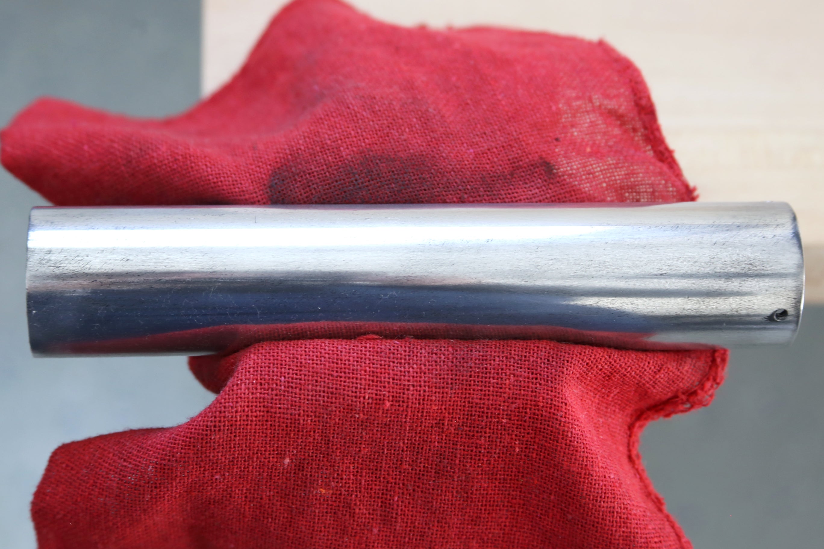 Quickly wipe the tube down with your shop rag when done to remove leftover buffing compound. You don't need to do too great of a job right now because we are about to buff it again.