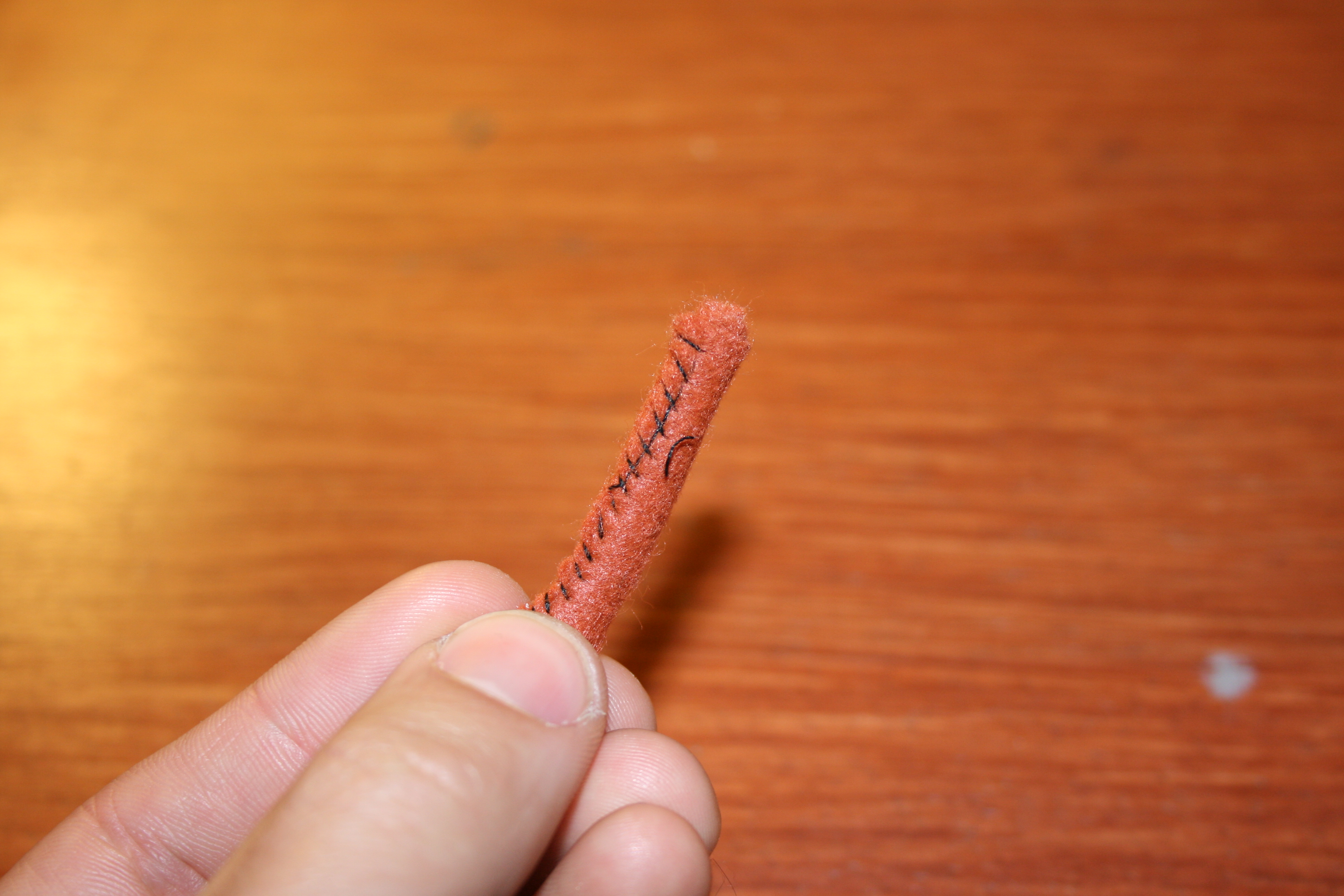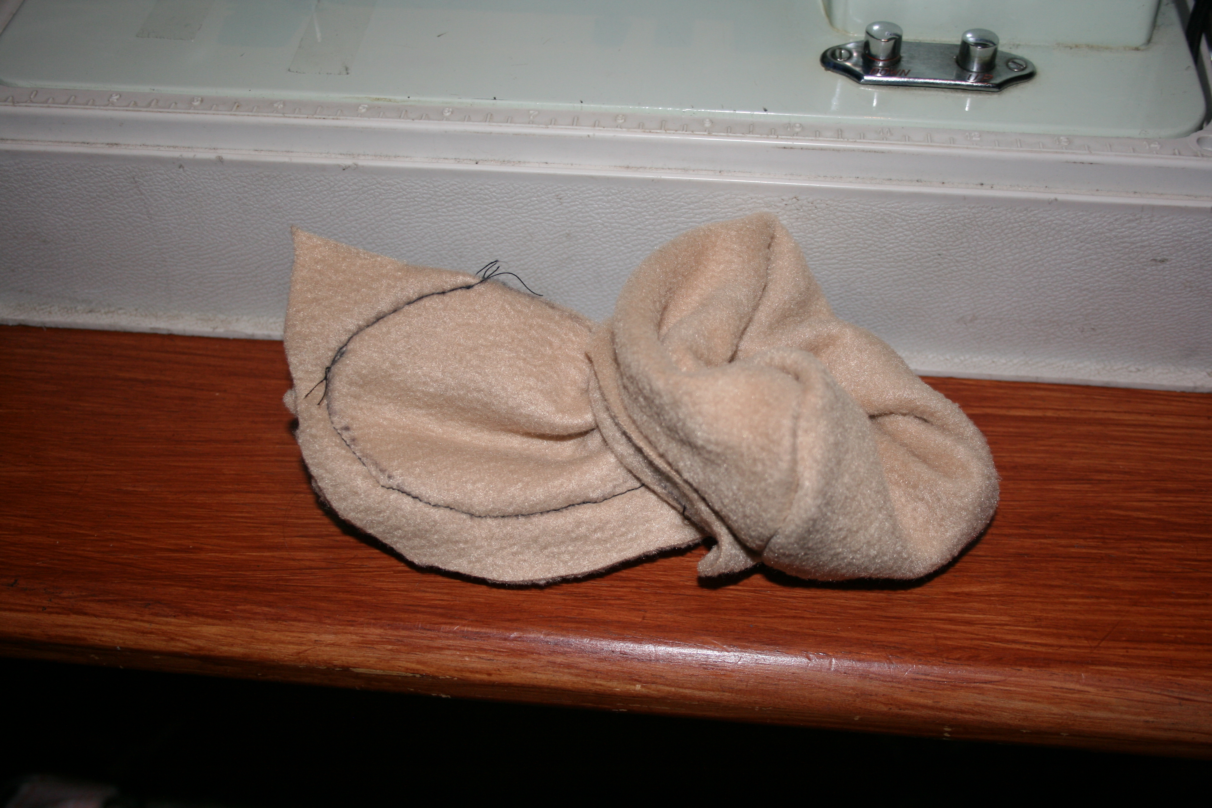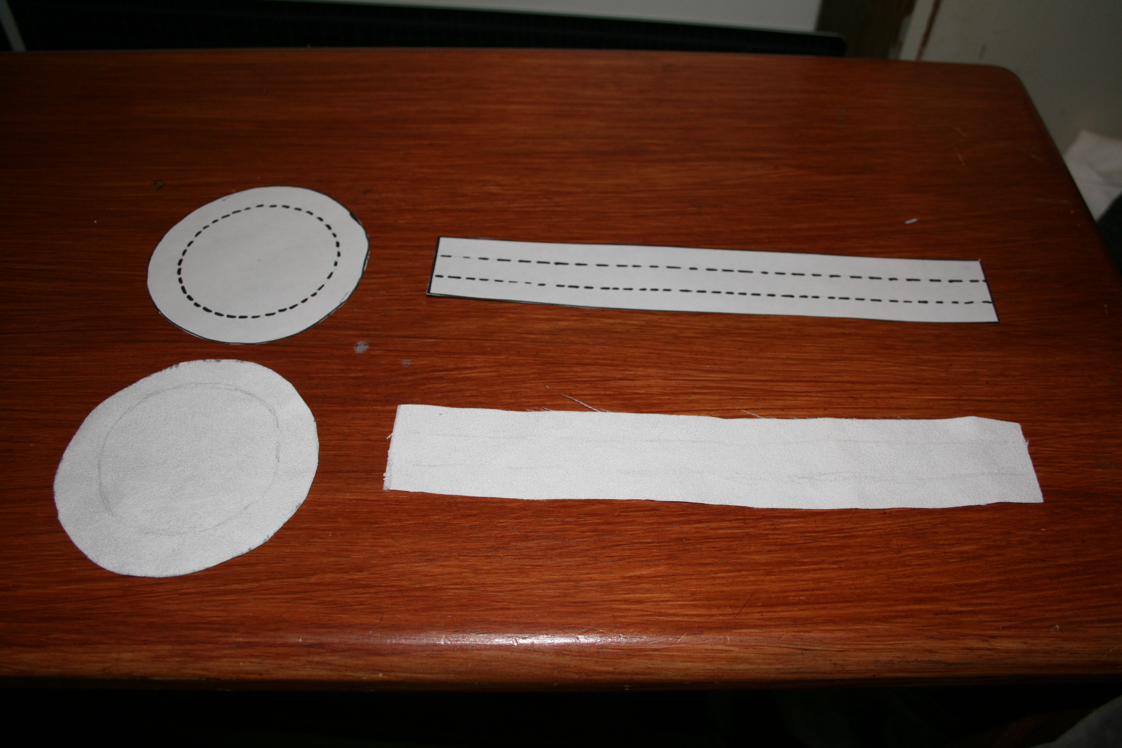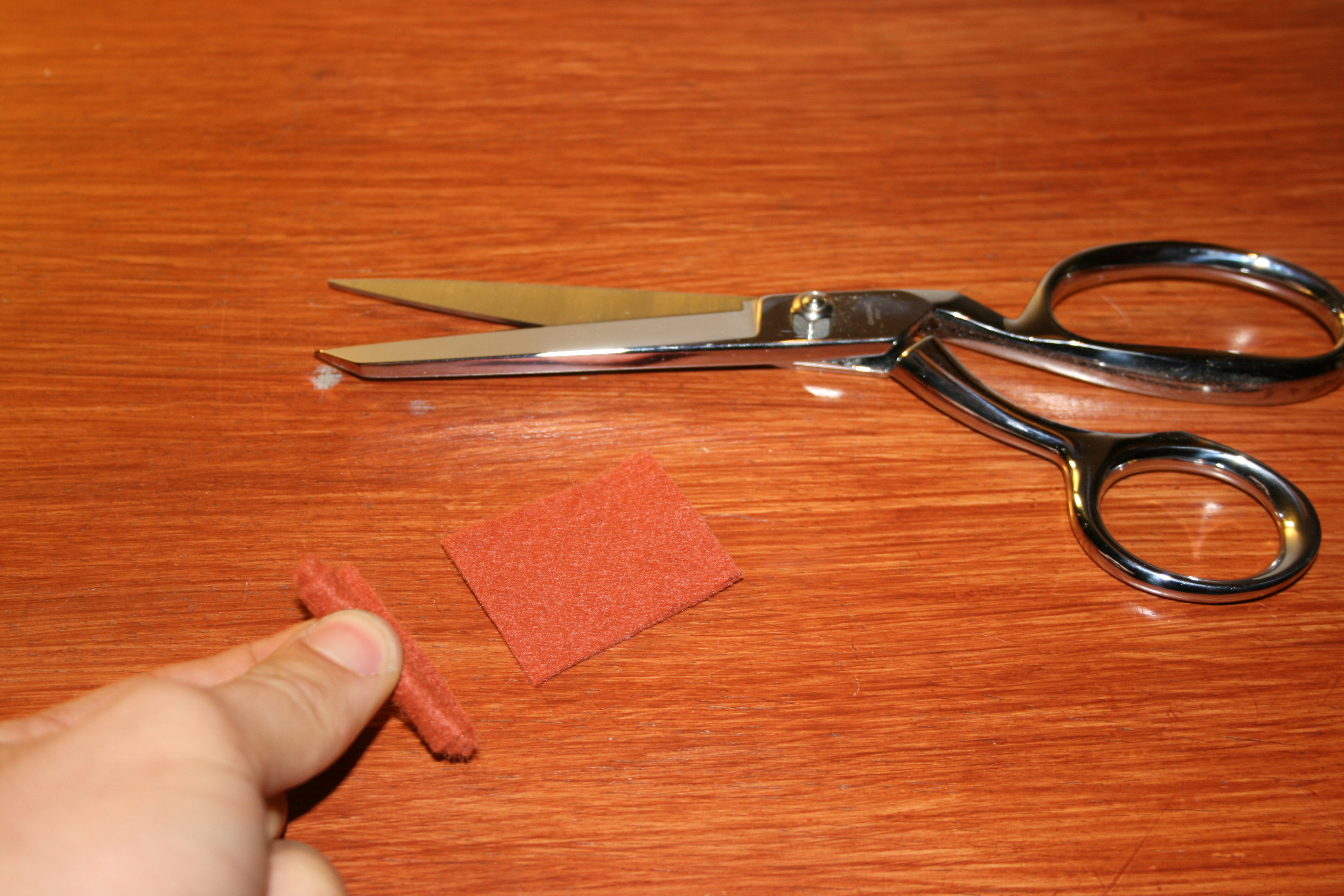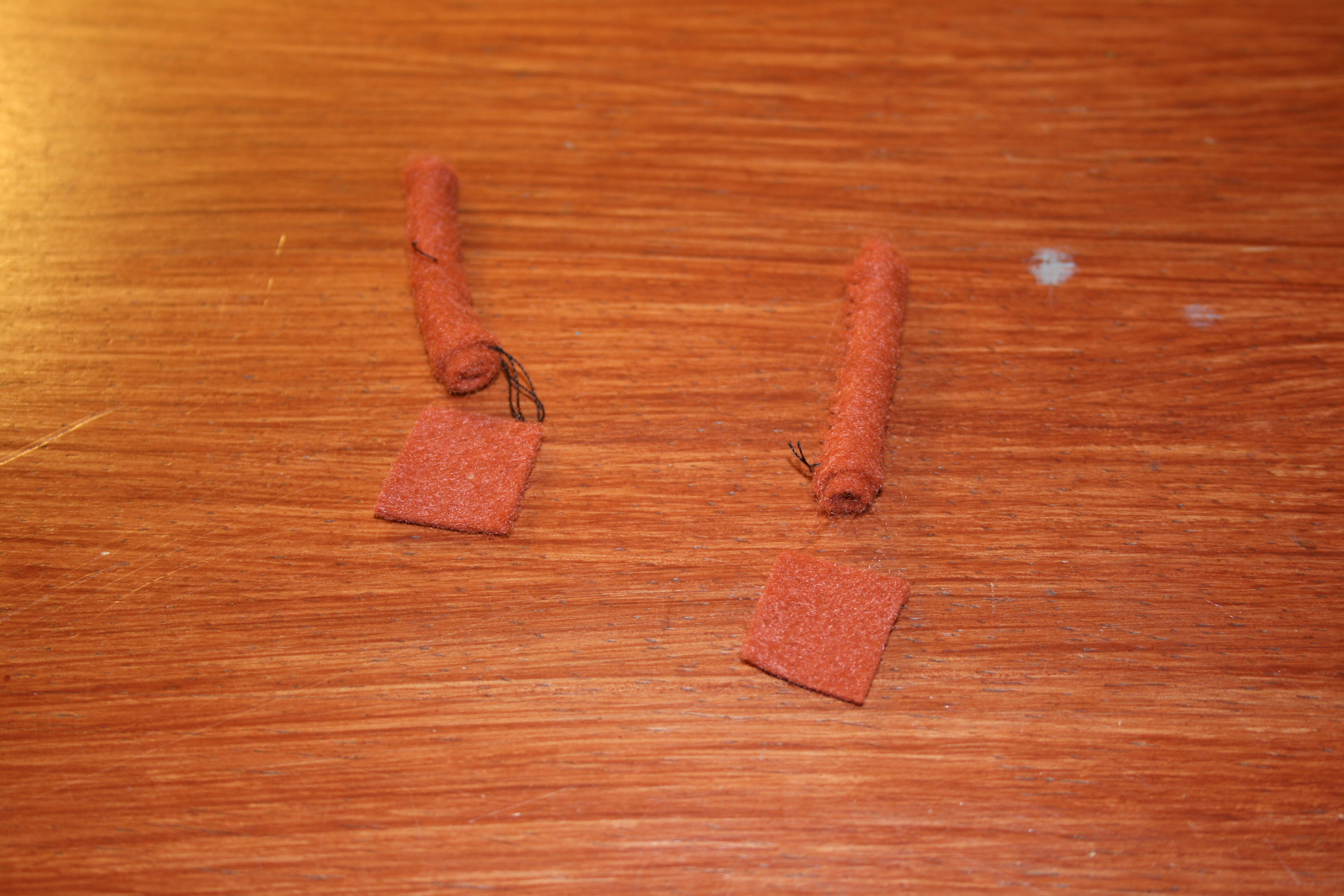 Using your felt (or other thick fabric) cut out a strip about an inch and a half wide. The length needed will vary from person to person. Roll up the fabric as tightly as you can until it is stiff enough to hold its shape. Shave off the excess and stitch the loose end down. Do this twice.