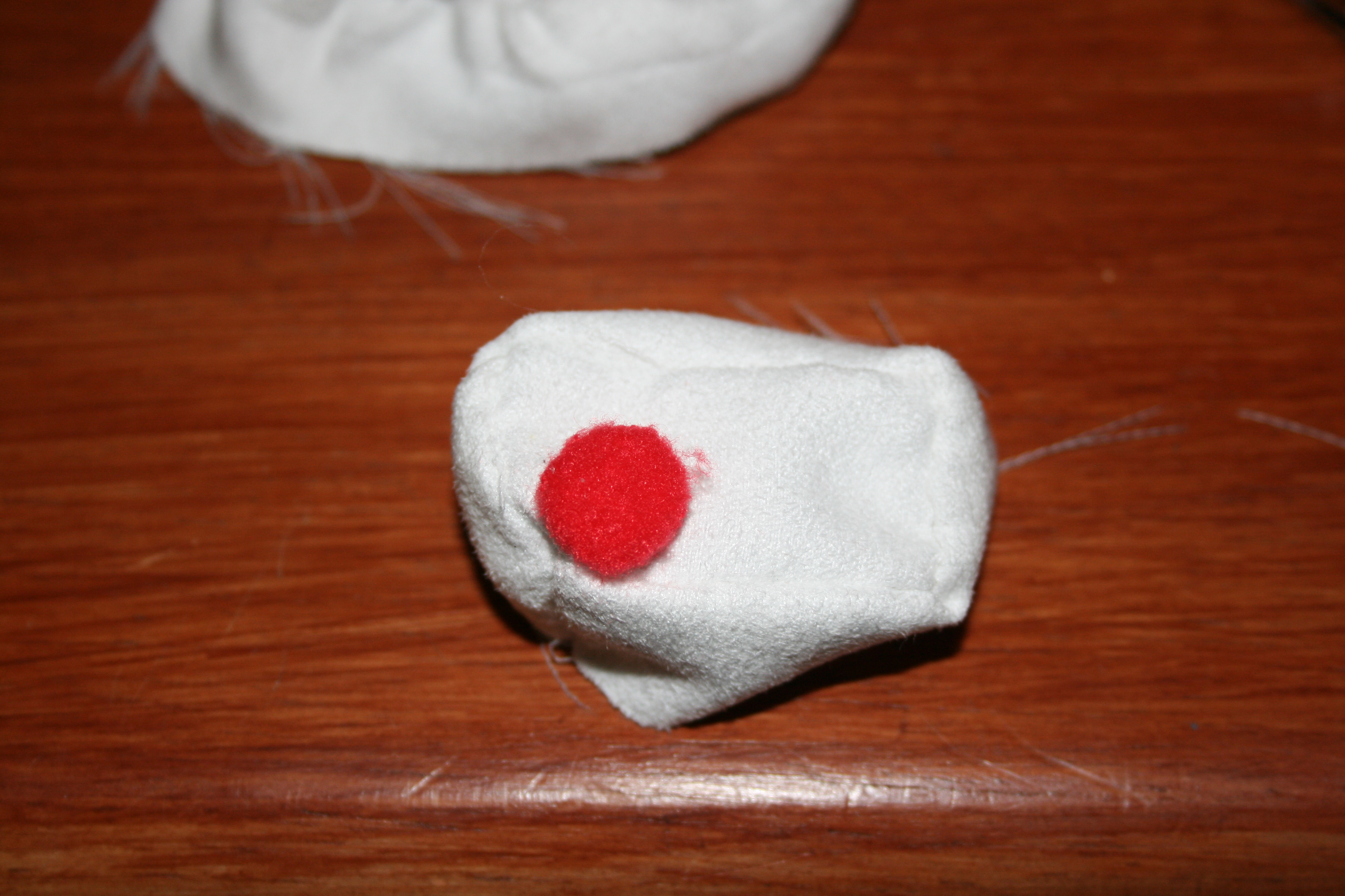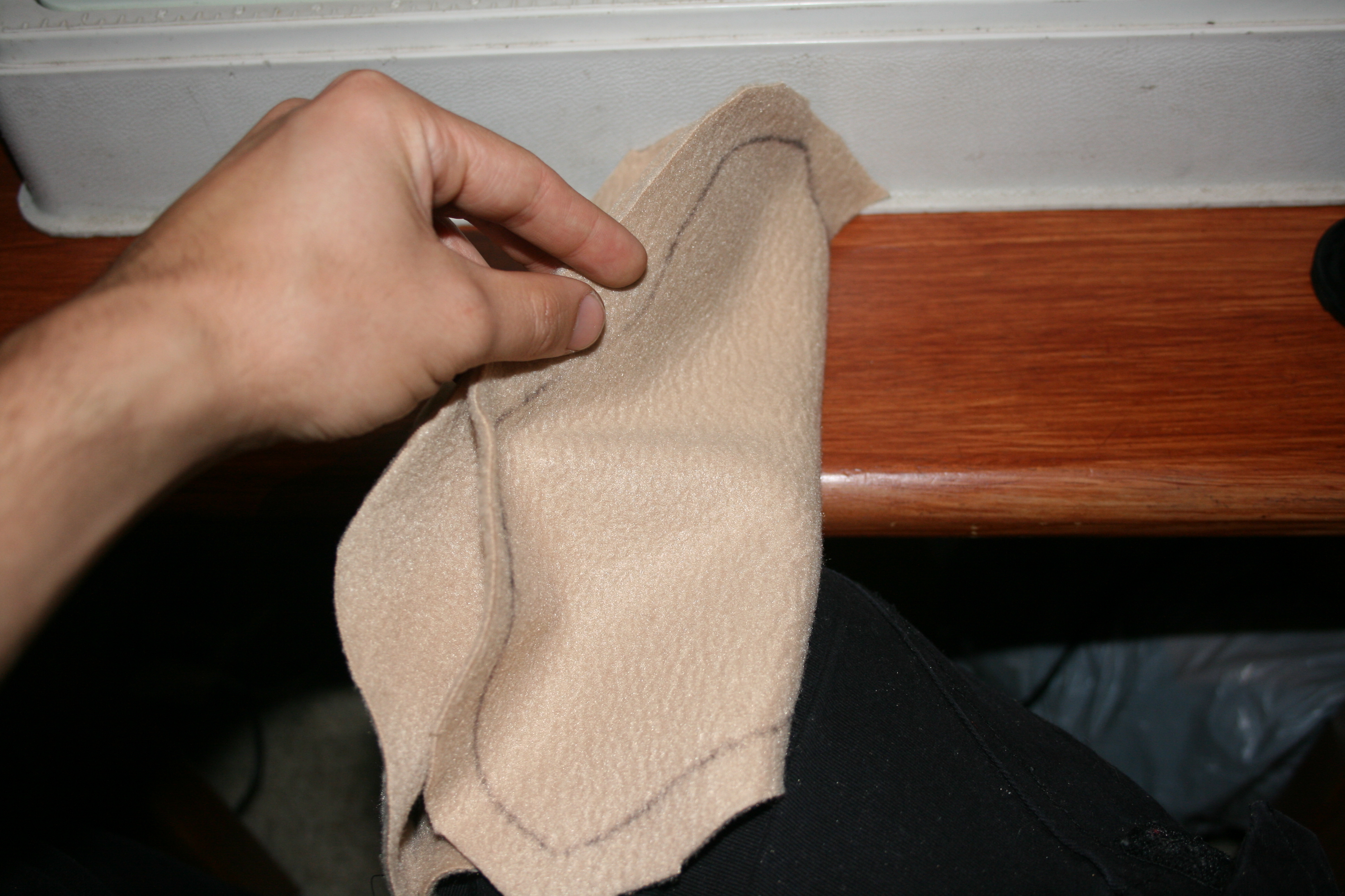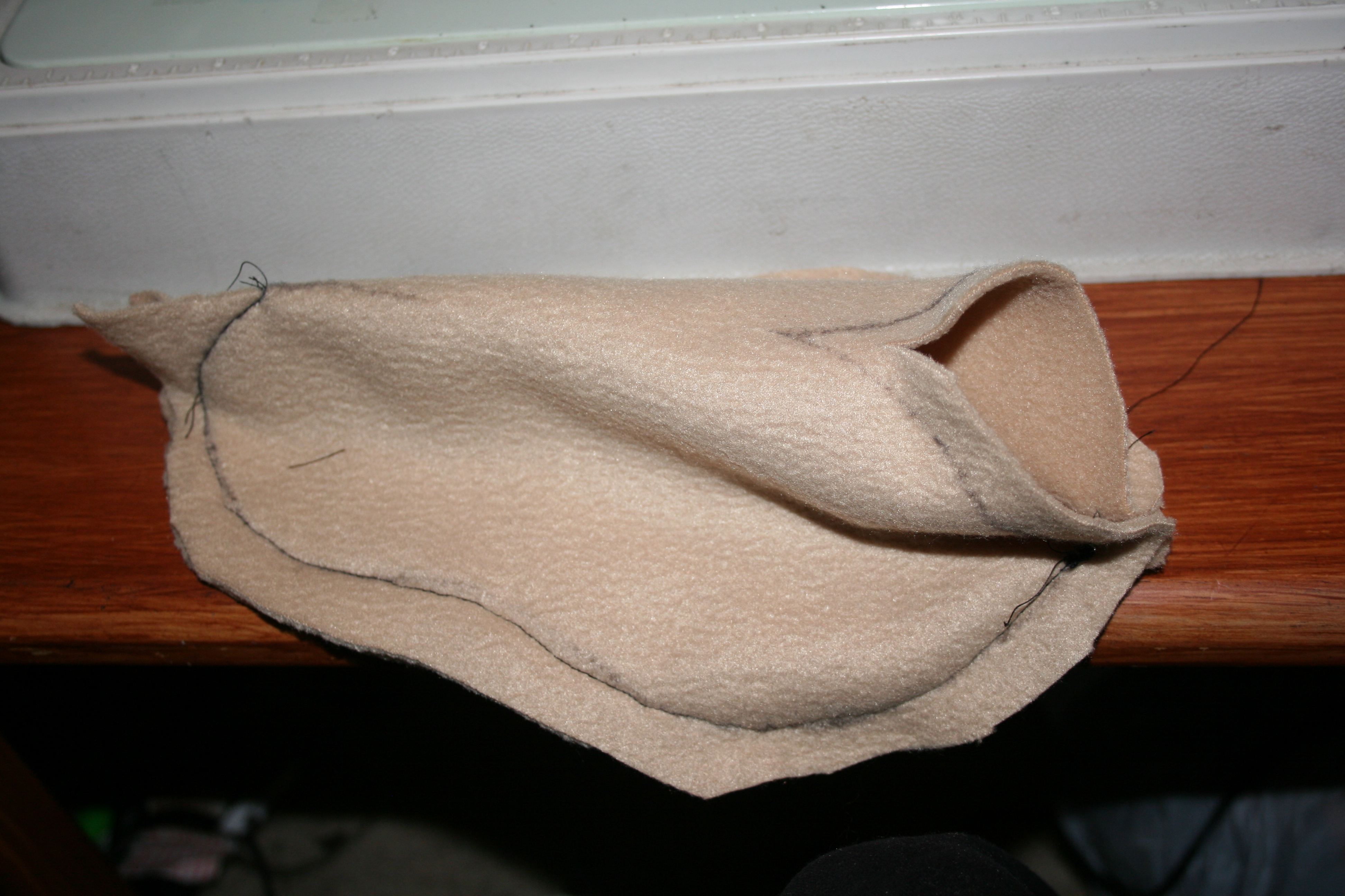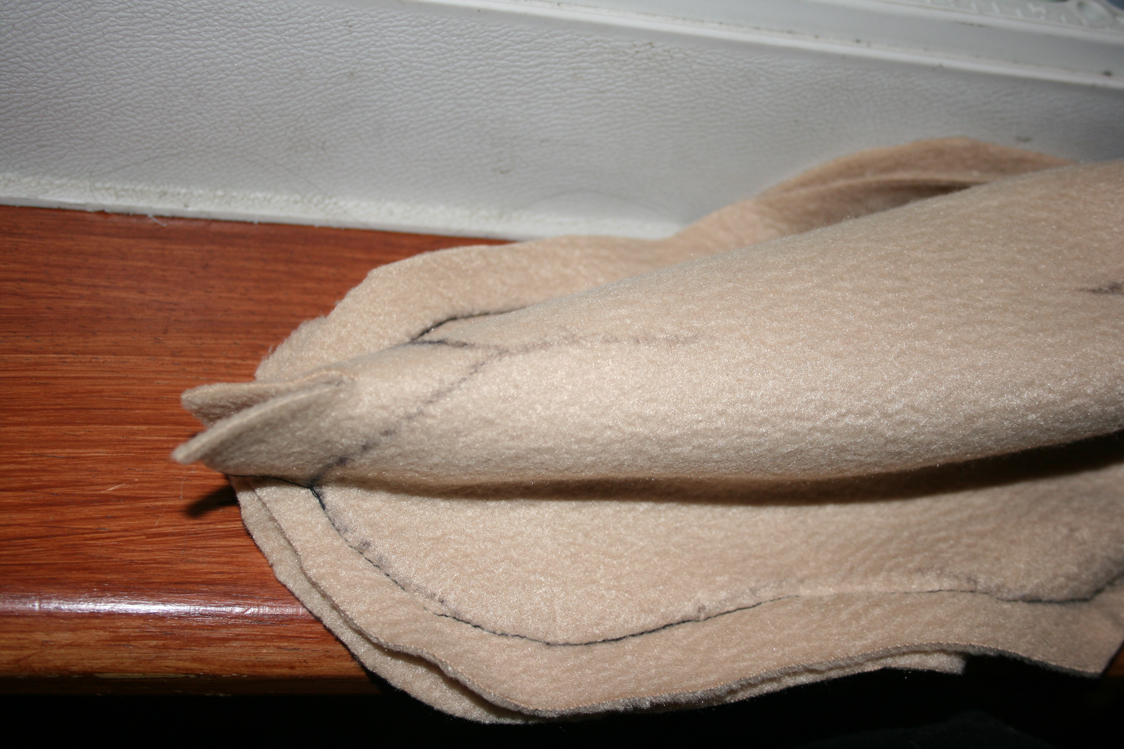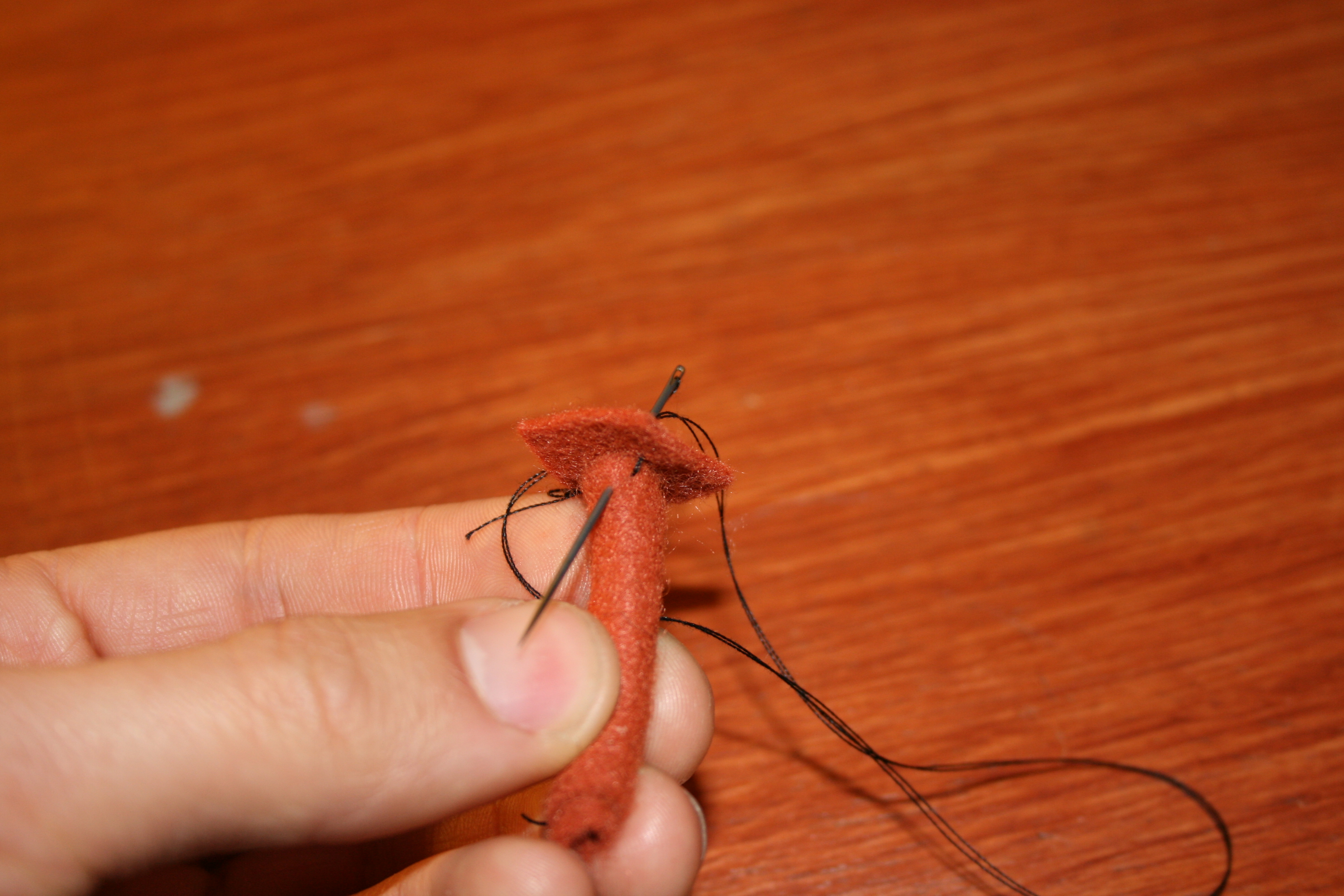 Using your felt (or other thick fabric) cut out a strip about an inch and a half wide. The length needed will vary from person to person. Roll up the fabric as tightly as you can until it is stiff enough to hold its shape. Shave off the excess and stitch the loose end down. Do this twice.