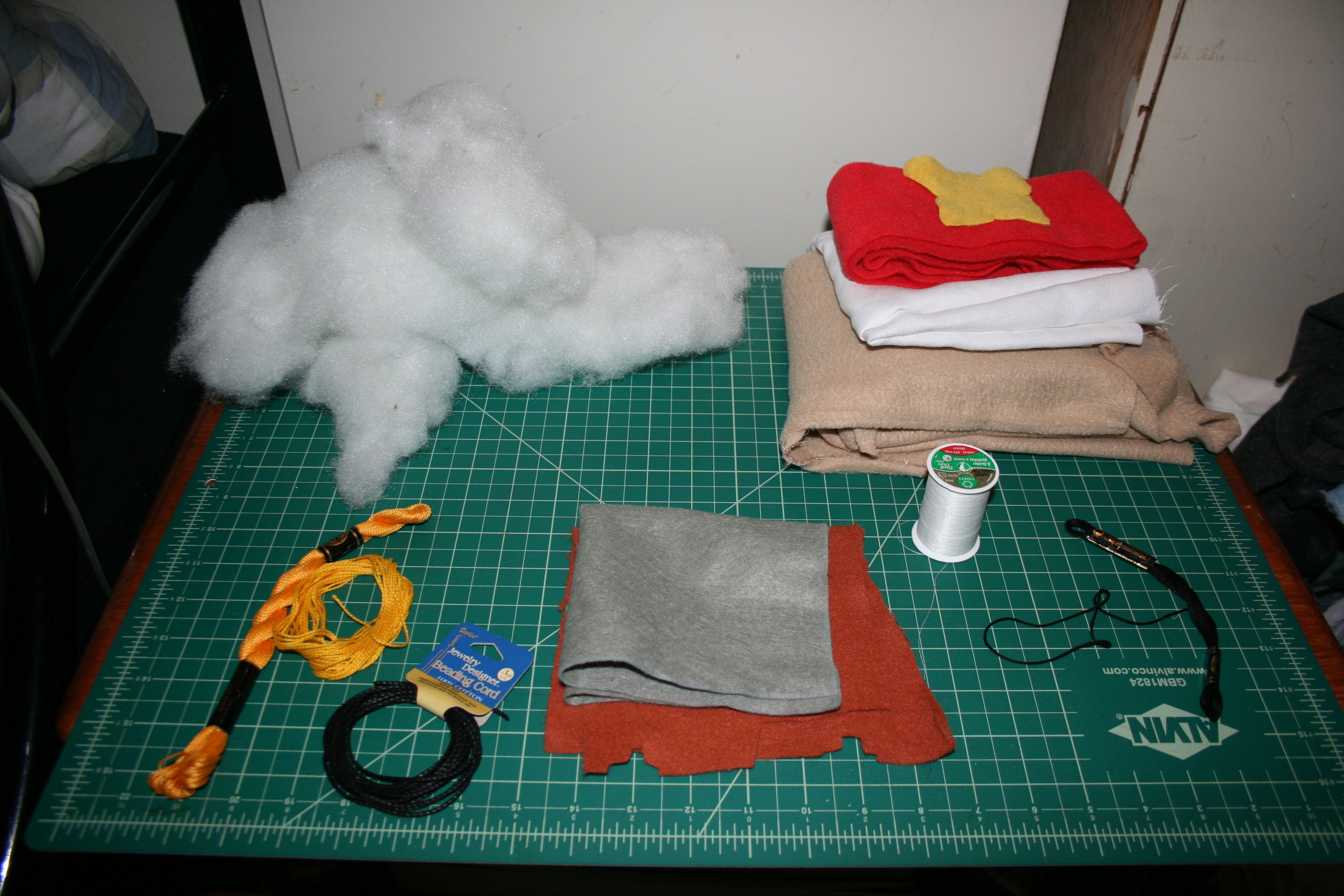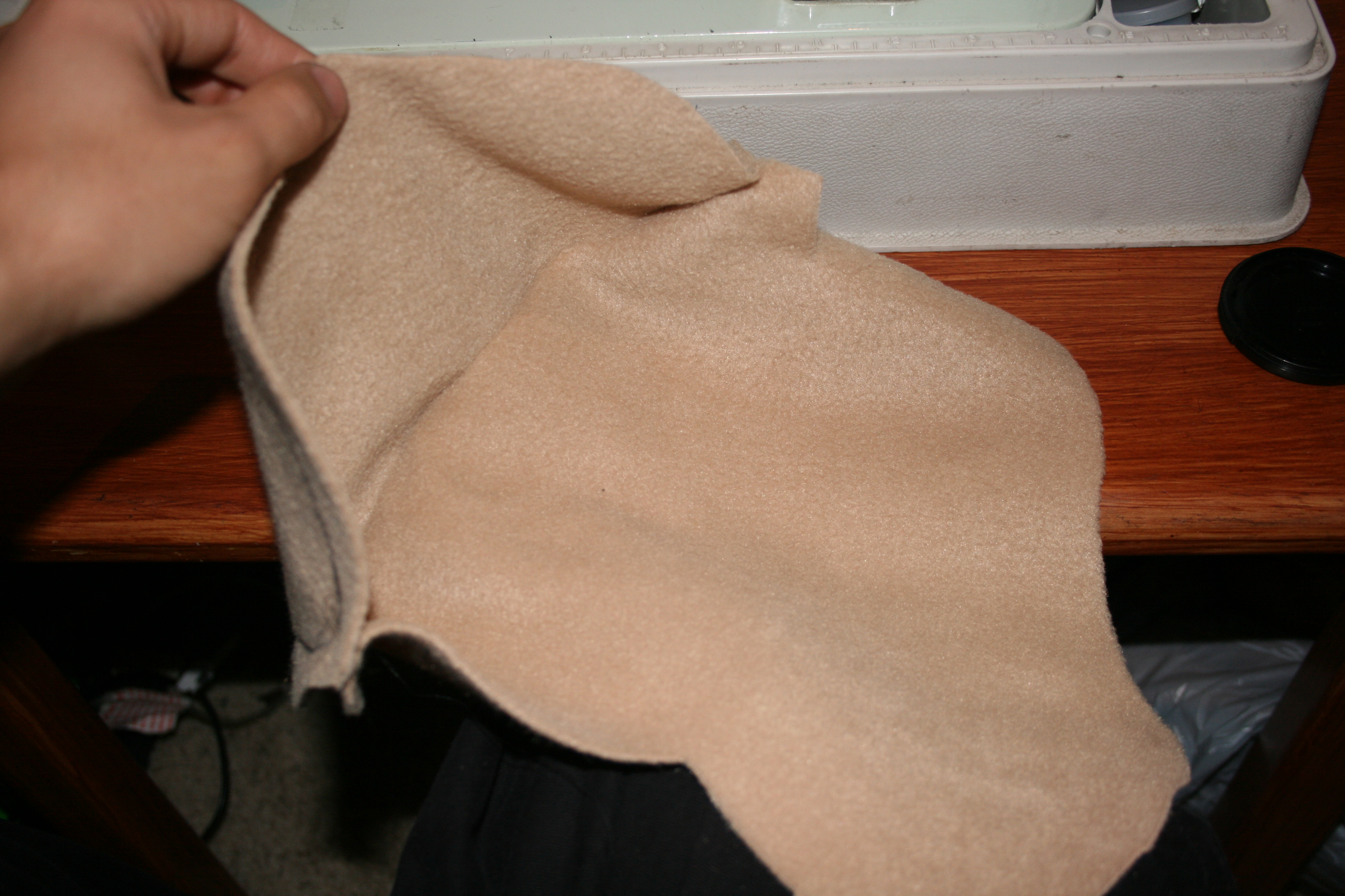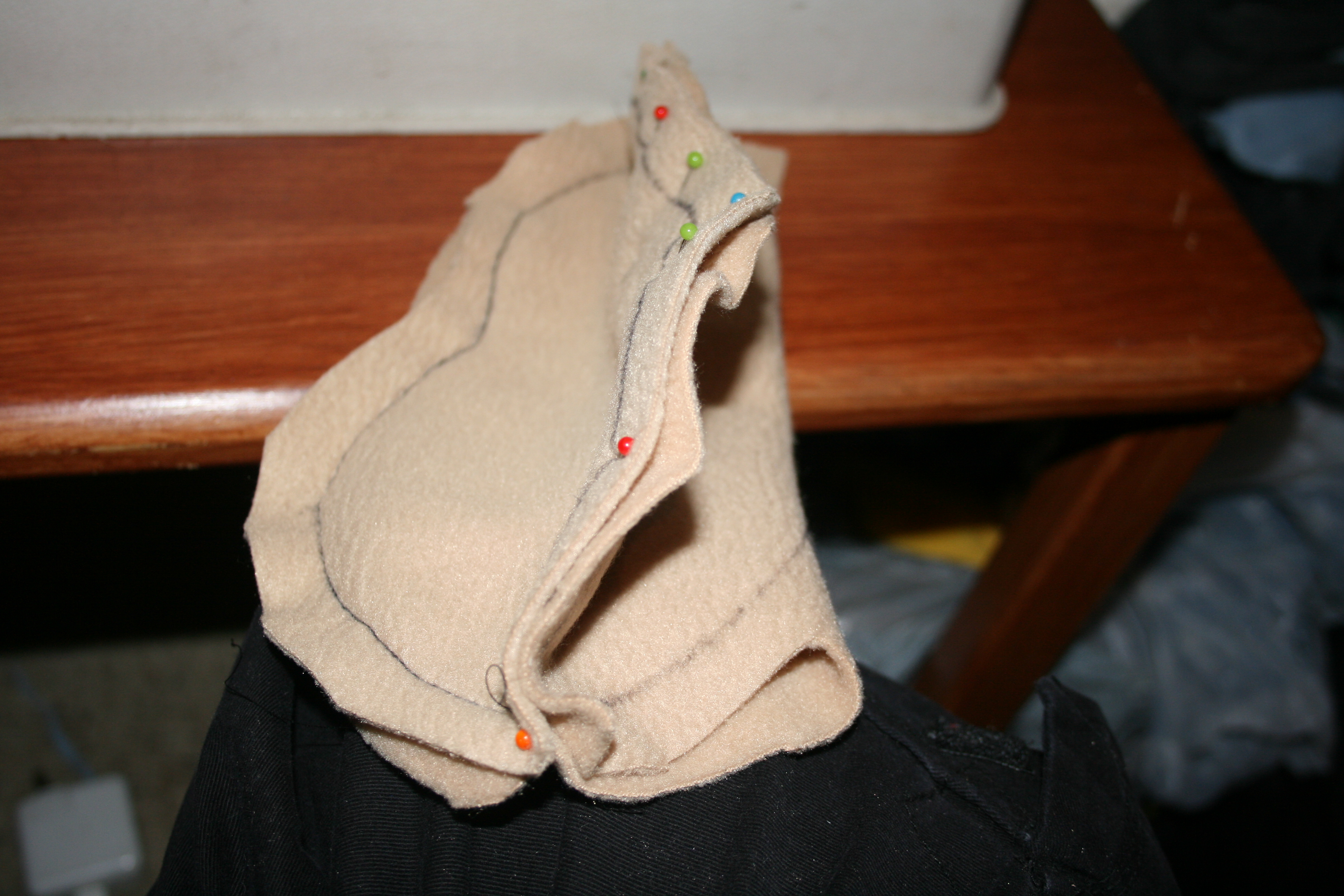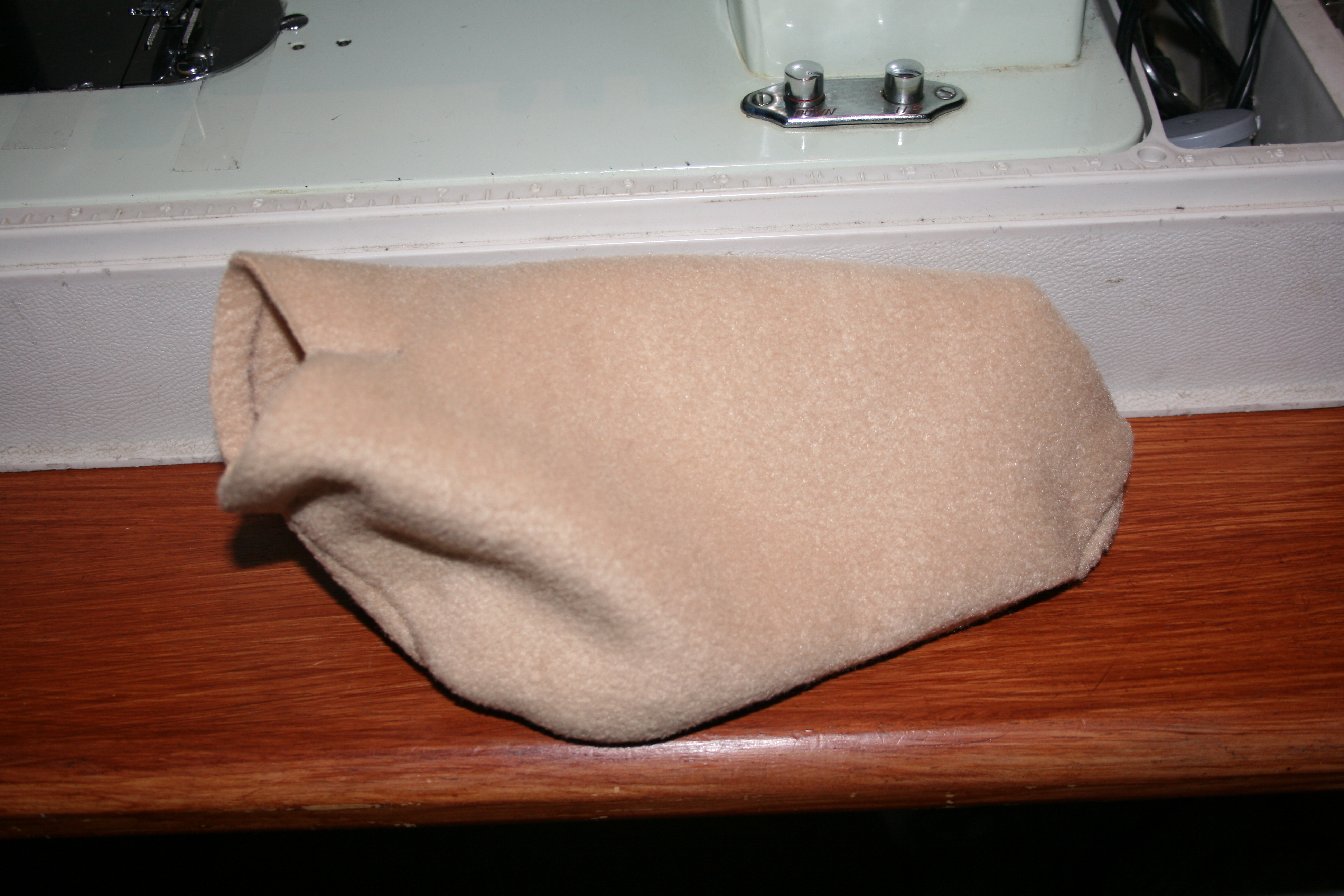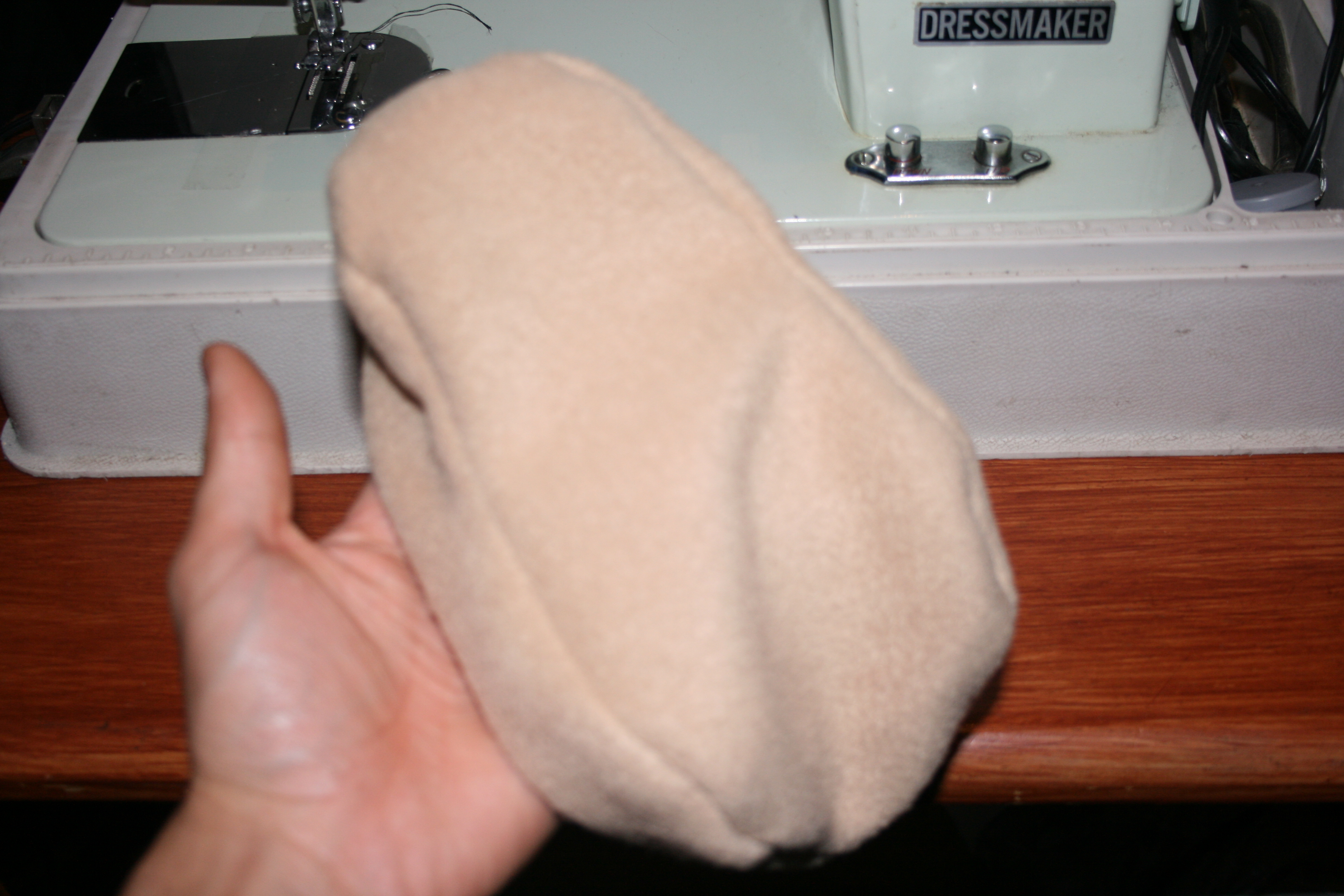Using your felt (or other thick fabric) cut out a strip about an inch and a half wide. The length needed will vary from person to person. Roll up the fabric as tightly as you can until it is stiff enough to hold its shape. Shave off the excess and stitch the loose end down. Do this twice.