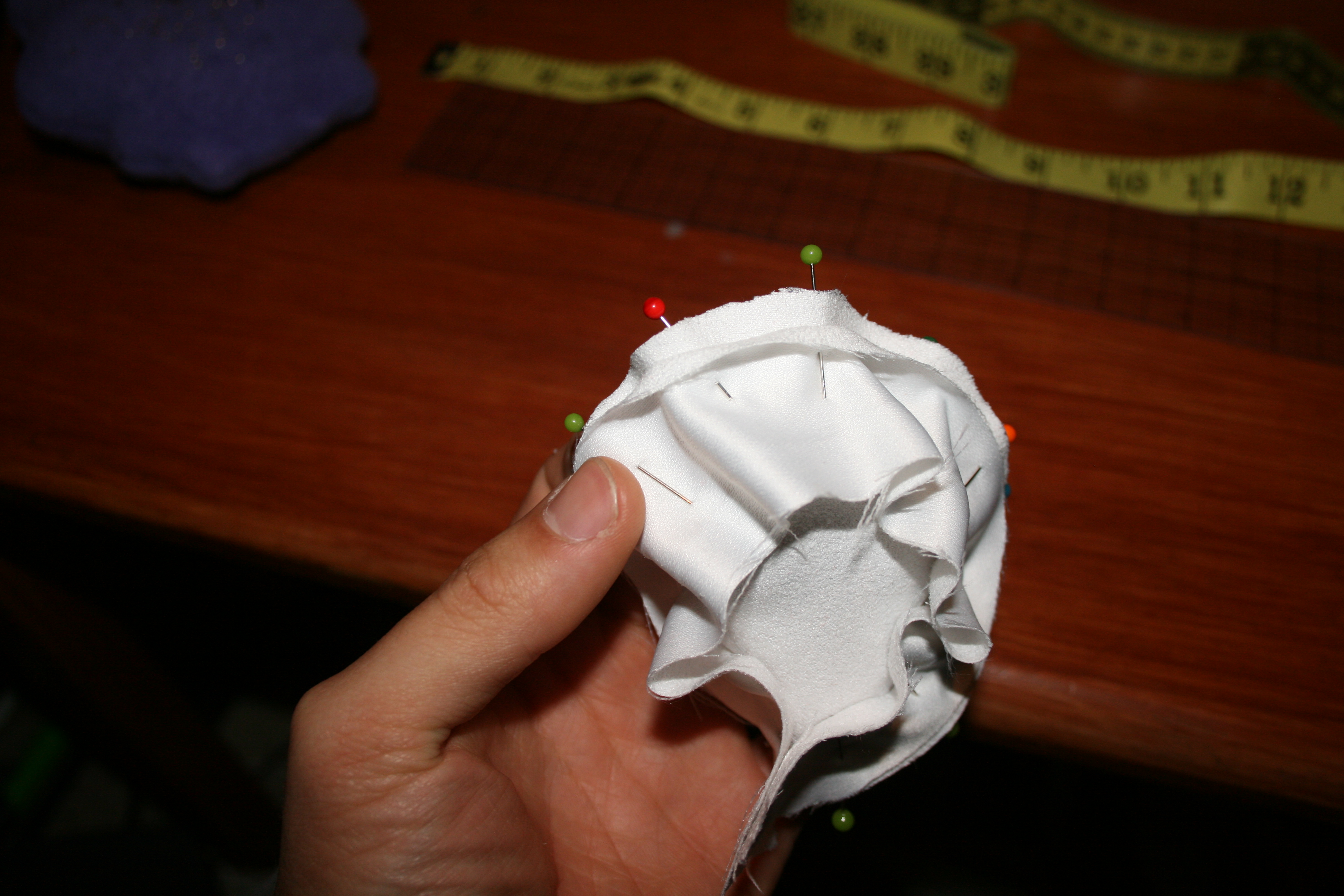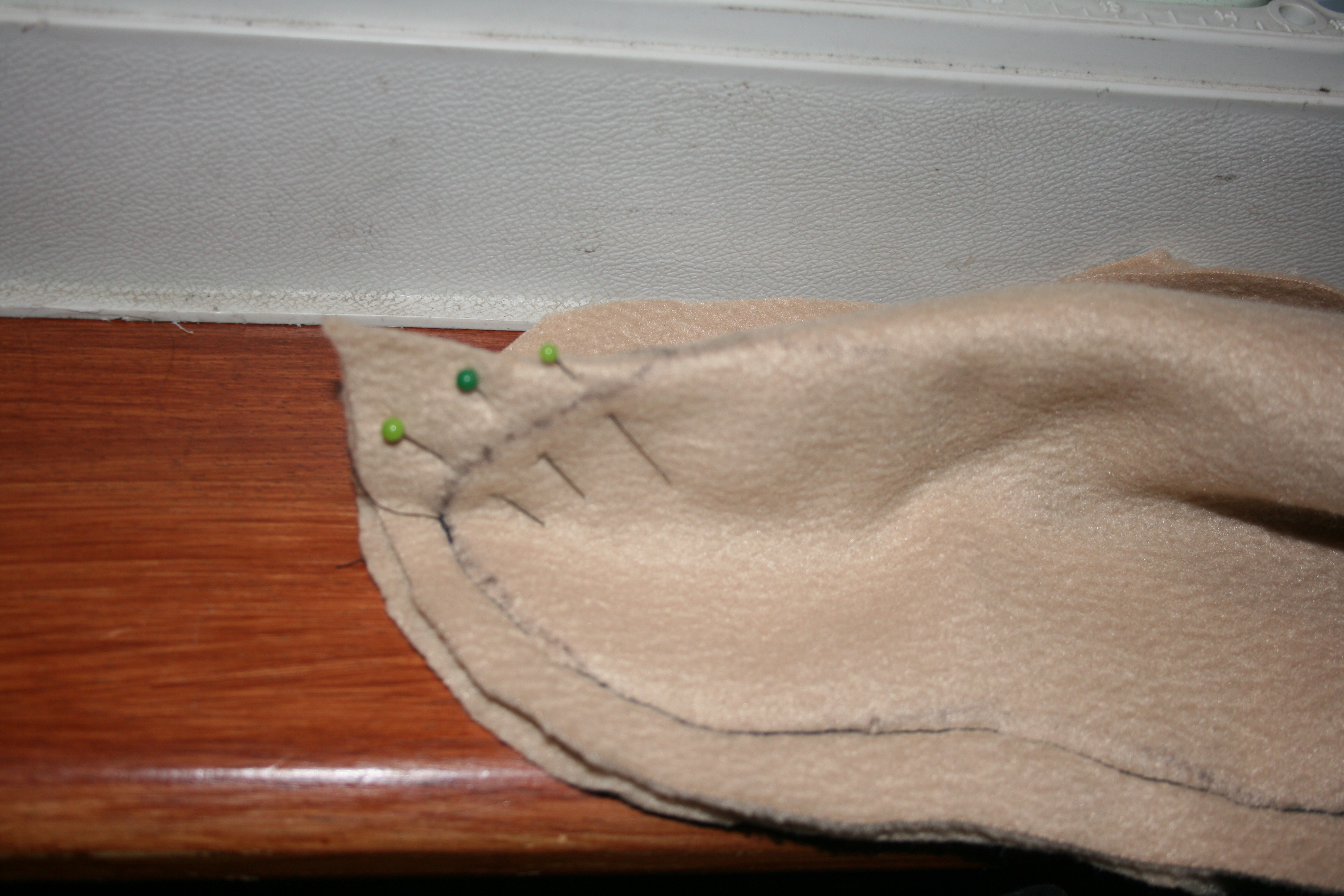 Find the opening at the top of the potato (the smaller side) and pin it closed. Align the lines on both sides and stitch along the curve.