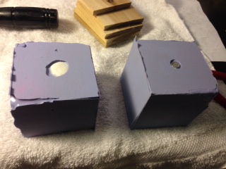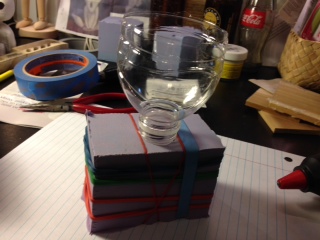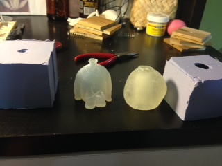 If you have a watertight box that fits your bobblehead and that you don't mind destroying once the mold is done setting, go ahead and use that one. Just make sure it's strong enough to endure a beating for when you want to get the air bubbles out. If you don't have one, just use some wooden slats and your handy dandy glue gun to whip up a small box that fits the parts you want to make molds of. You can make a large box that fits both the head(s) and body(ies) of the bobbleheads or you can just make a small box like I did and do each part one by one. Make sure there are no holes by holding the box up to a light and looking if an odd amount of light gets through in some parts. And even if you're absolutely positive you're hole-less, have some tape on hand while you're pouring.