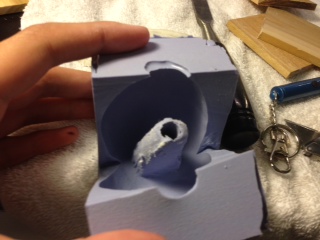 The actual casting process is the same as the molding process in the last step, equal parts of the ingredients go together and into the mold. The only caveats I'd give are (1) to mix and pour the material quickly and efficiently because it sets fast and you don't want to be mid-pour when it does and (2) DEFINITELY use some sort of funnel. I didn't want to use kitchen funnels so I just cut the top off a water bottle and glue gunned it to the top of the mold. This way, the overflow won't be a pain in the ass and you can rotate your mold at weird angles to make sure all the air is out (which is something you should definitely do). Then let it set and remove it.