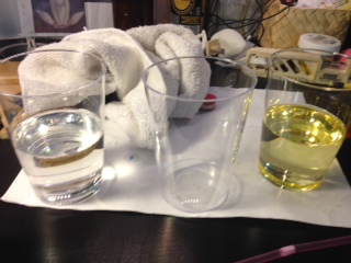 Prepare the correct amount of liquid rubber ingredients separately before you combine them. I used cups that I marked when I simulated how much I'd need with water. Then pour your ingredients in your mixing container. Since I didn't have a disposable cup big enough to hold all of my ingredients, I used a Ziploc instead and just cut off the corner so it was like one of those cake frosting bags. It was a little messier than I would've liked and I DEFINITELY recommend using a cup as your mixing container. Make sure you pour in one corner only and wait for the mixture to slowly rise up to reduce air bubbles. Once you're done, take the container and shake it and smack it for a while to help any air bubbles rise up. Then just sit back and wait for the rubber to solidify.