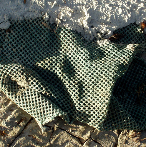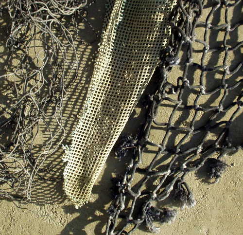 Fishnet comes in different size meshes. The green fishnet in the center is what I am using for this project.