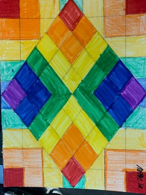 This is a Geo art using the colours of the rainbow to make a cool design that could go on a wall or in a picture frame.
