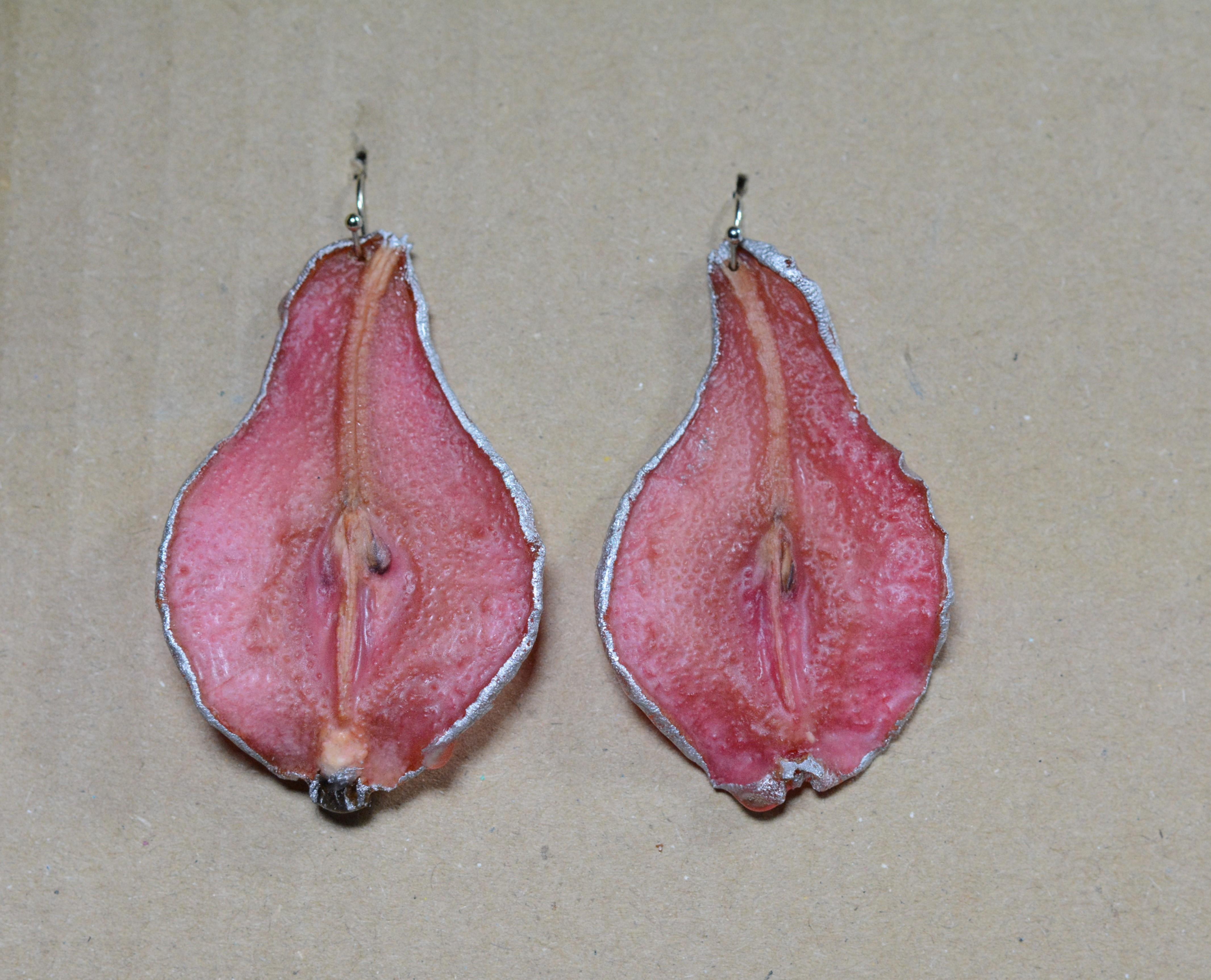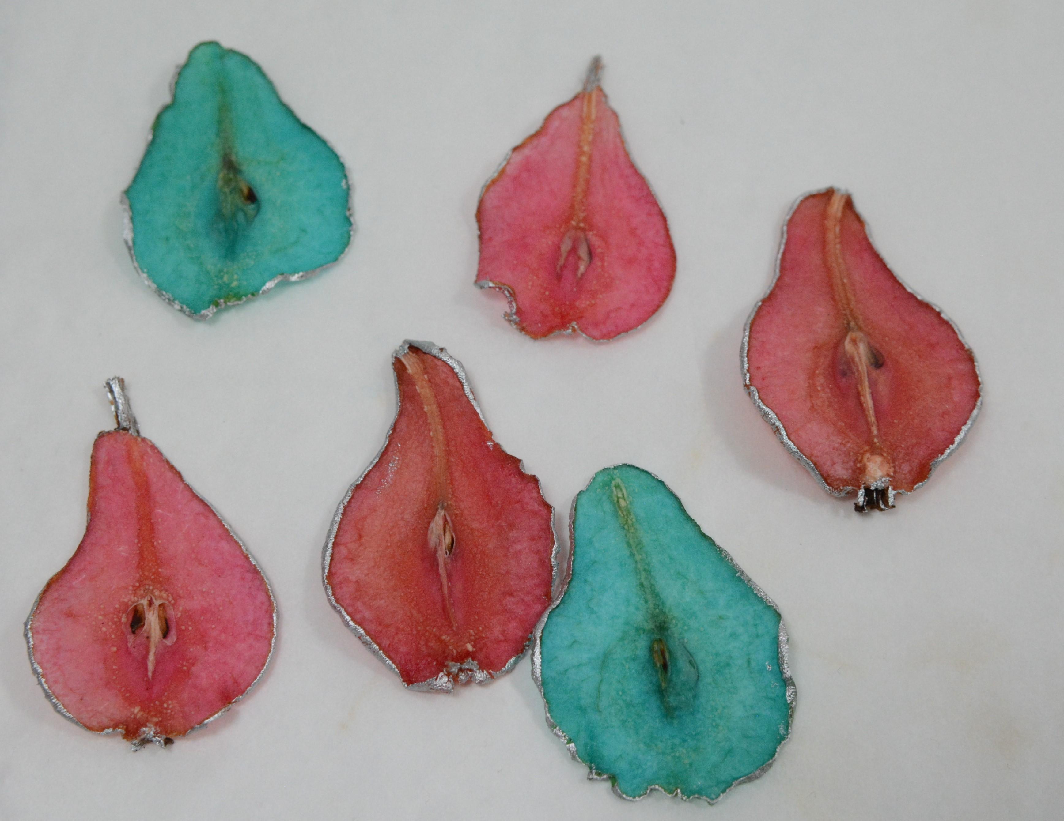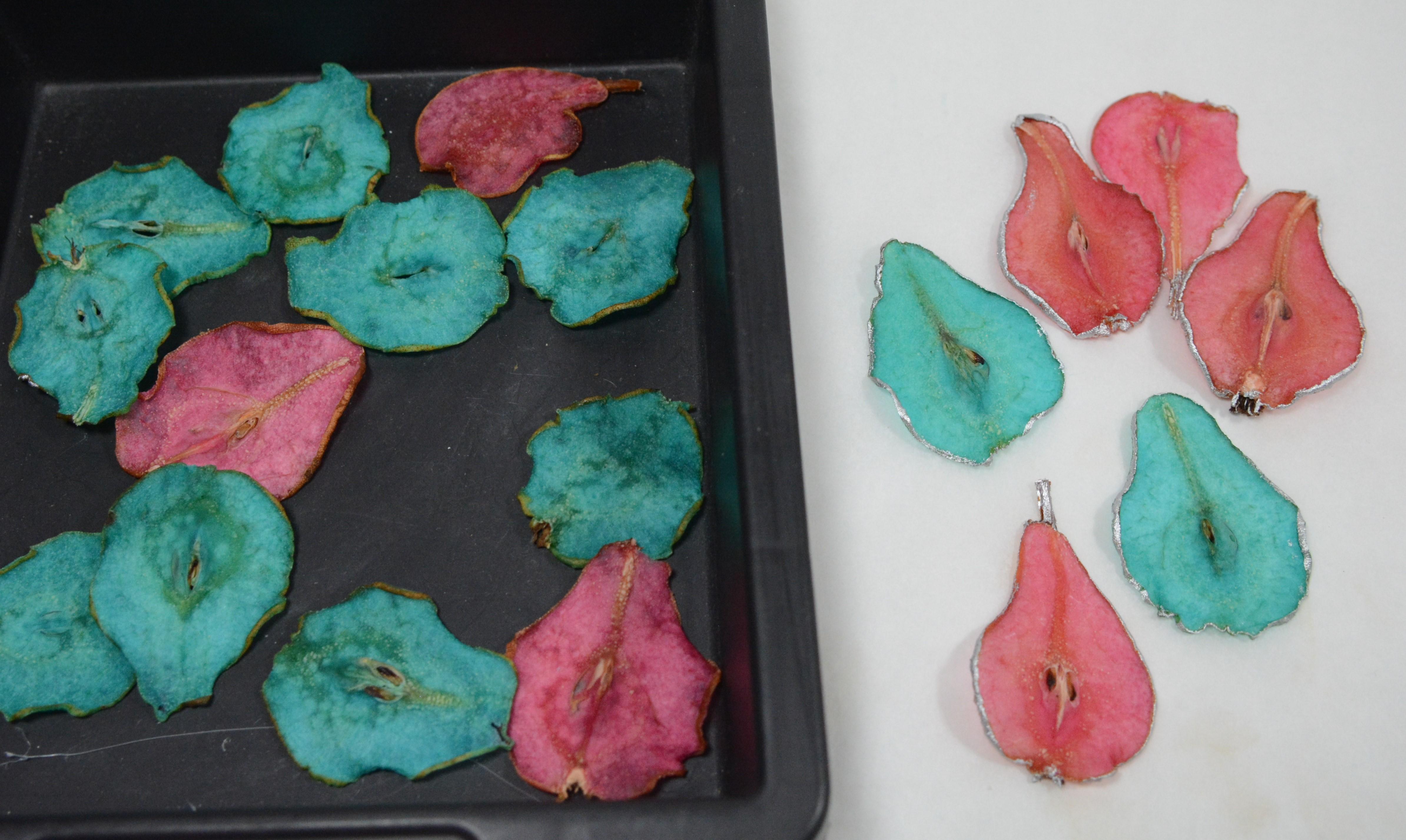 Resin Hardened, Coloured and Sliced Pear Earrings