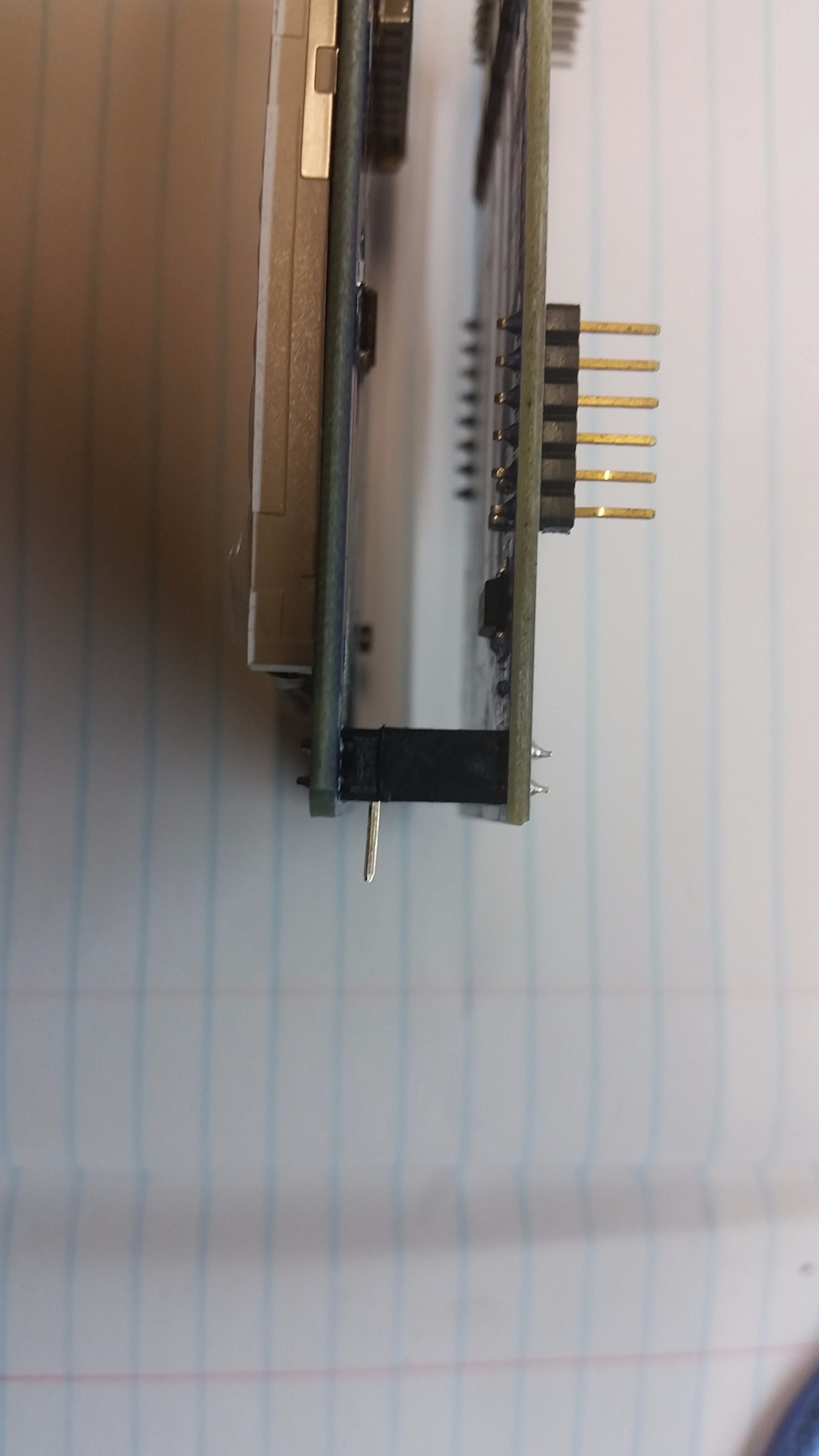 Unfortunately, the backlight in the TFT screen is hard wired into +3.3v and cannot be adjusted with the Arduino. This means we have to disconnect it and reconnect to a PWM pin on the Arduino to control the Backlight brightness. I wanted to do this with minimal damage to pins or tracks on the components so took the following approach.