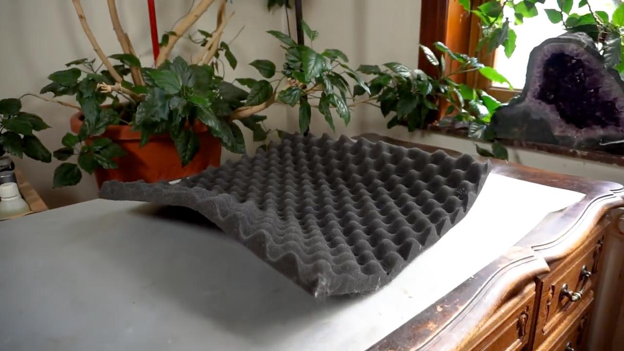 I decided to use some acoustic foam, as its eggshell top surface is perfect to grip the gear I'll be storing. This type of foam can be bought for cheap on the internet (Amazon, eBay, AliExpress) – although I have no clue how efficient those cheap foams are to actually dampen sound in a room.