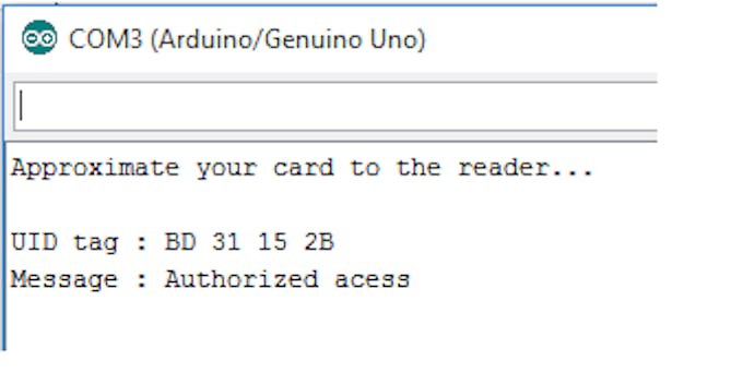 Upload the code above and you should now see the RFID tag serial number on the serial monitor every time you tap the RFID tag.
