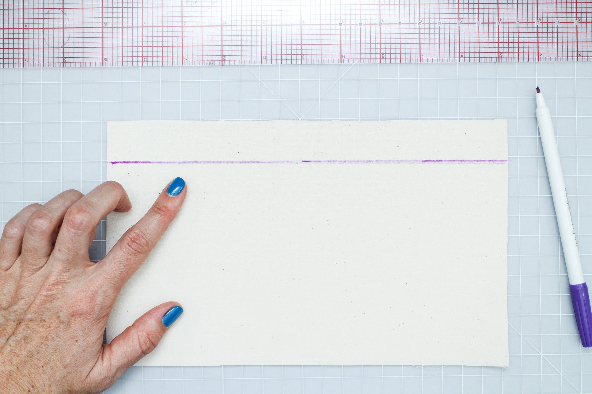 To do this, use your clear ruler and disappearing pen to mark a line 1" in from the edge of your fabric.