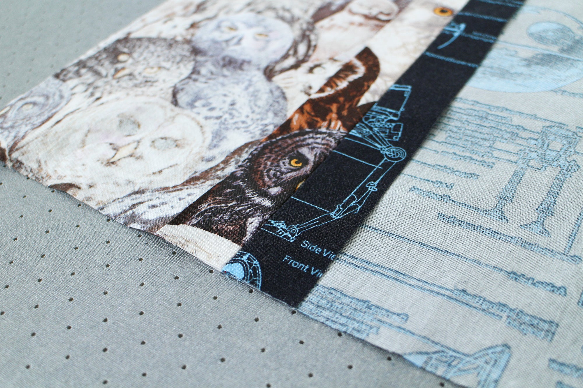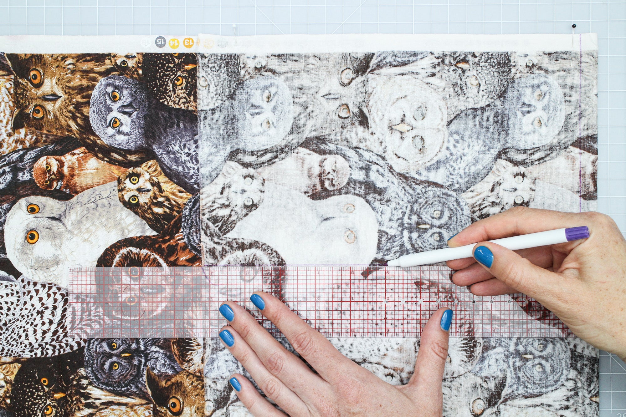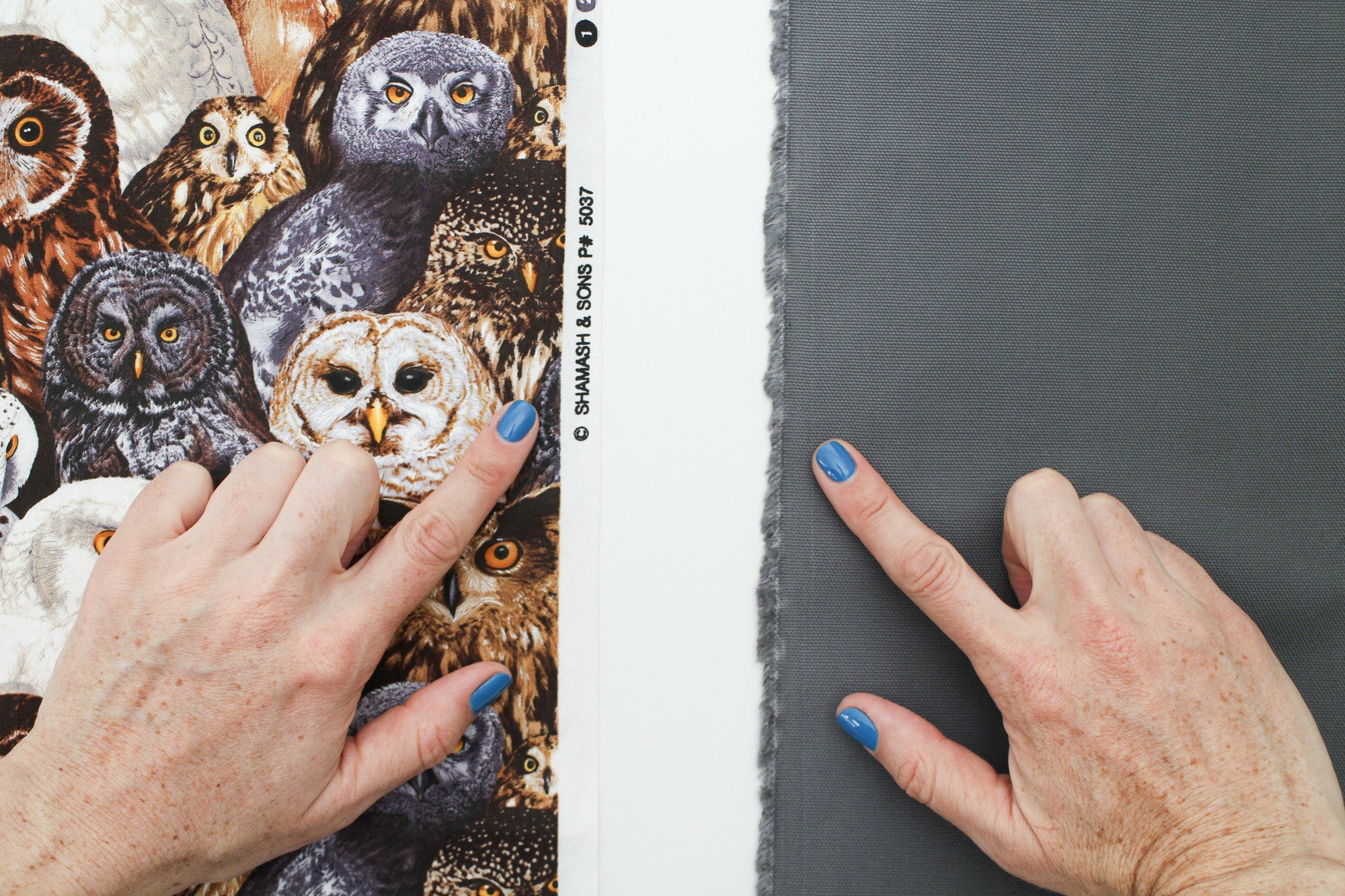 Most fabric also has a front and back. On some fabric, many printed fabrics for example, it is obvious which side is the "right side", (here it's the side where you can see all the owls :) on others it is a little more subtle. Of course, which surface you decide to show on the outside of your projects is always up to you, but you need to make sure are marking and sewing consistently on one side or the other.