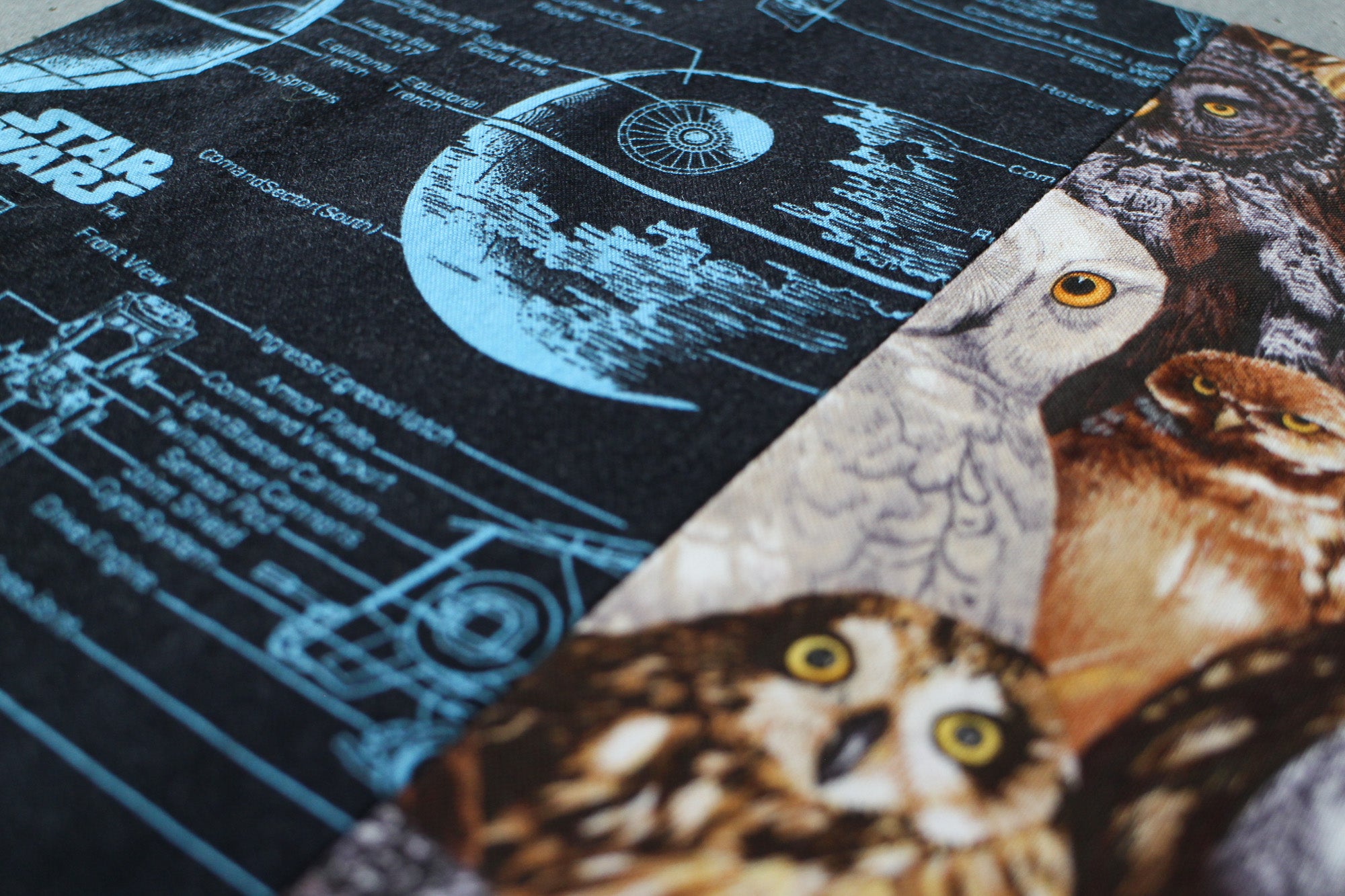 Does your fabric have Star Wars technical plans and owls on it!?? If it does, we should be friends :)